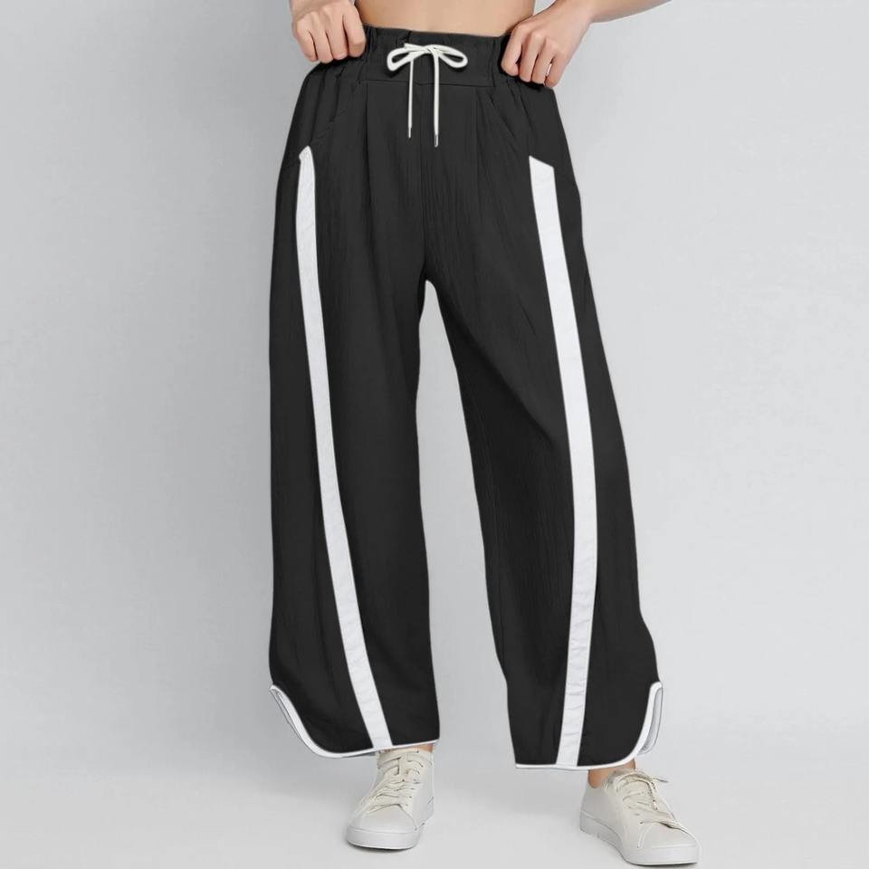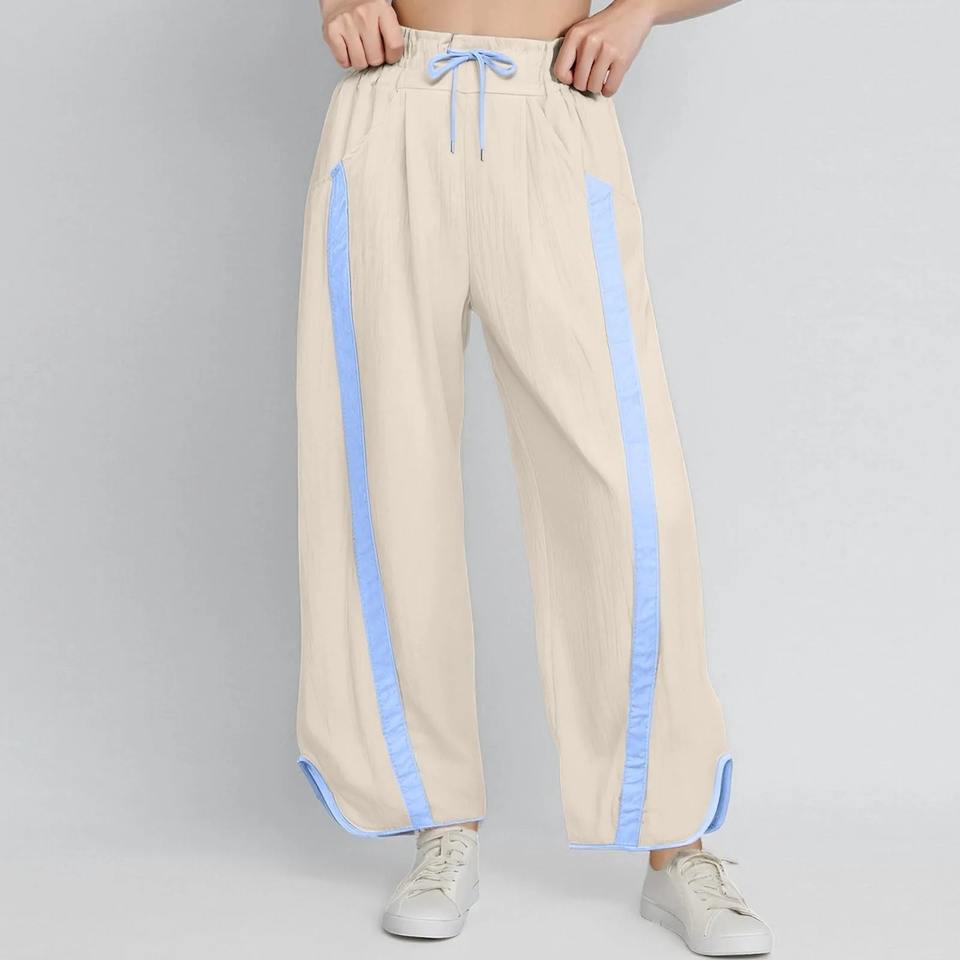 กางเกงวอร์มเอวสูงของผู้หญิงกางเกงผ้าแคนวาสสำหรับใส่ได้ทุกวันมีแถบคาดเอวยางยืดและกระเป๋าสวมใส่สบาย