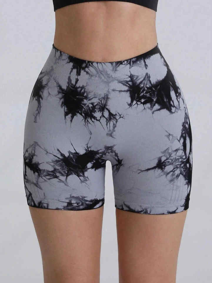 กางเกงขาสั้นโยคะเอวกลางลายสก็อตสำหรับผู้หญิง ผ้าสแปนเด็กซ์/ไนลอน ยืดได้สี่ทิศทาง ระบายอากาศได้ดี กระชับรูปร่าง เหมาะสำหรับออกกำลังกาย