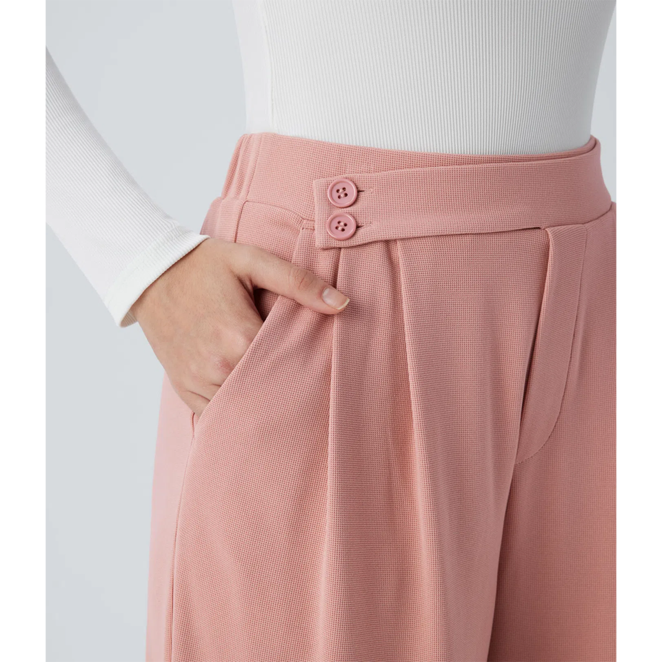กางเกงเอวสูงทรงดินสอพิมพ์ลายวินเทจของผู้หญิงพร้อมกระดุมปักโลโก้จีบตกแต่งแขนยาวและโบว์ฤดูร้อนทรงหลวมพอดีตัว