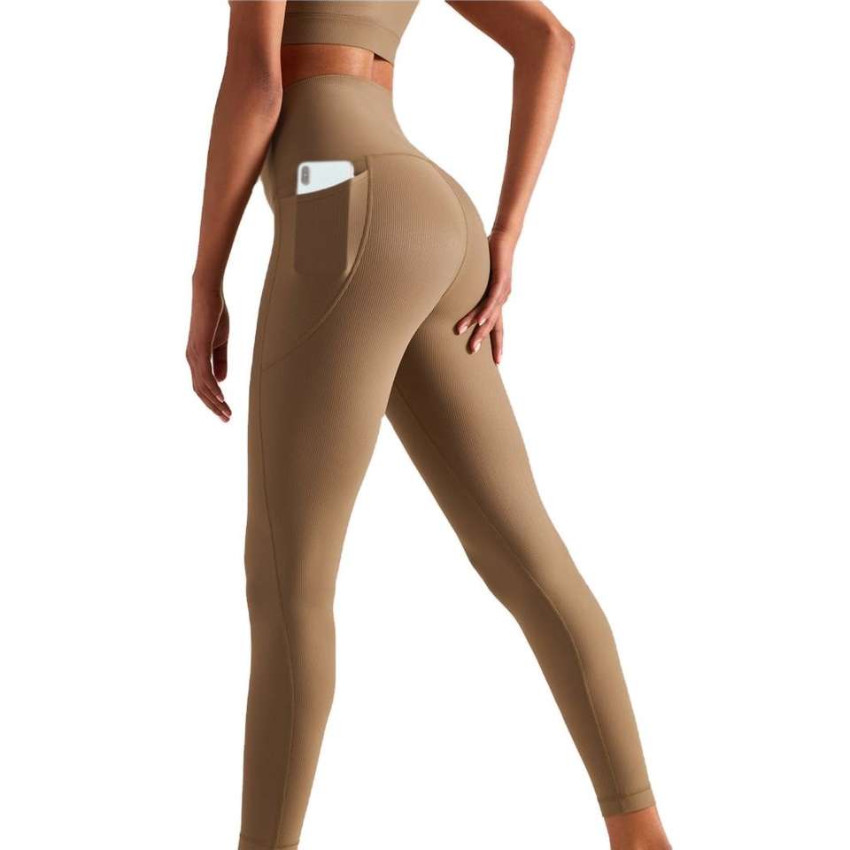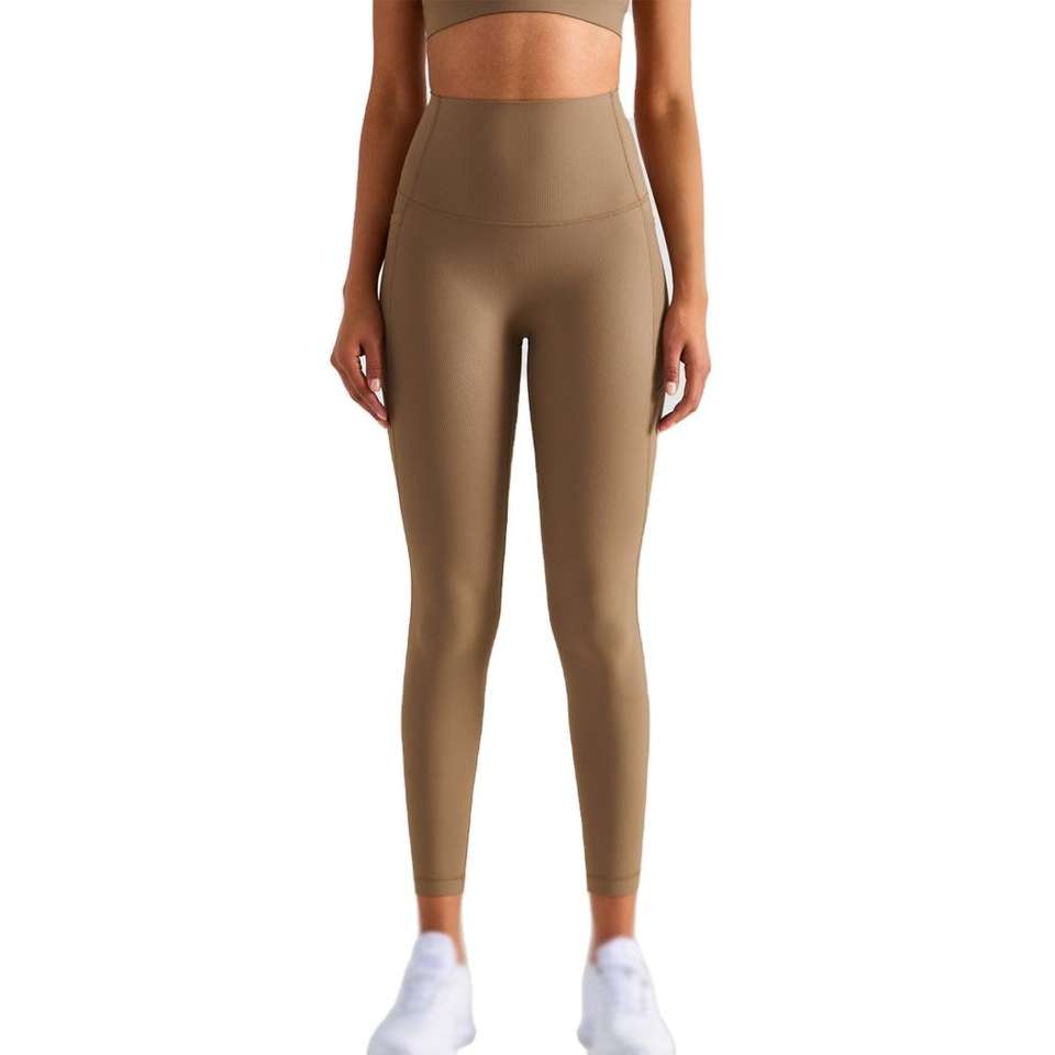 กางเกงโยคะเอวสูงสำหรับผู้หญิง-ผ้ายืดสี่ทิศทาง ผลิตจากสแปนเด็กซ์/ไนลอน ไร้ตะเข็บ เหมาะสำหรับออกกำลังกาย ฟิตเนส และเล่นกีฬา