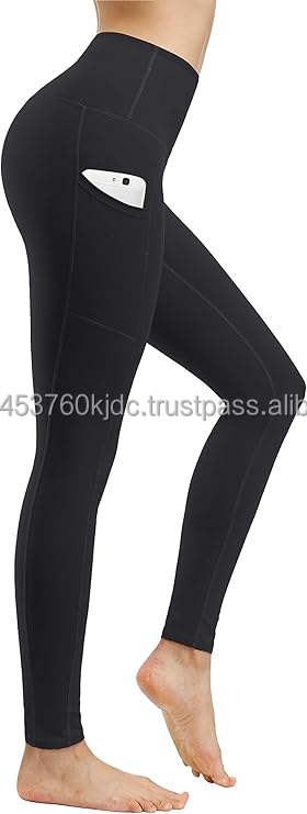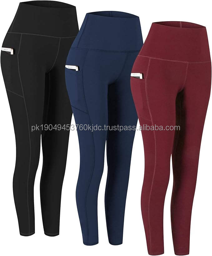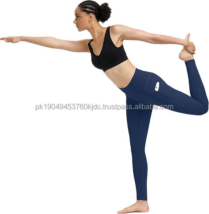 กางเกงโยคะเอวสูงสำหรับผู้หญิงกางเกงฟิตเนสยืดได้4ทิศทางควบคุมหน้าท้องมีกระเป๋าระบายอากาศได้ยืดหยุ่น