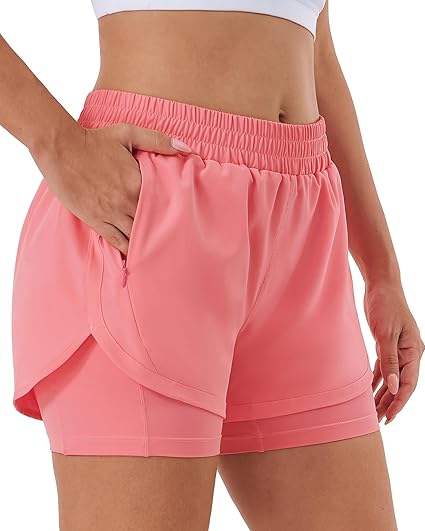 กางเกงวิ่งขาสั้นเอวสูงสำหรับผู้หญิง แห้งเร็ว สำหรับออกกำลังกาย มีซับในตาข่ายและกระเป๋าซิป
