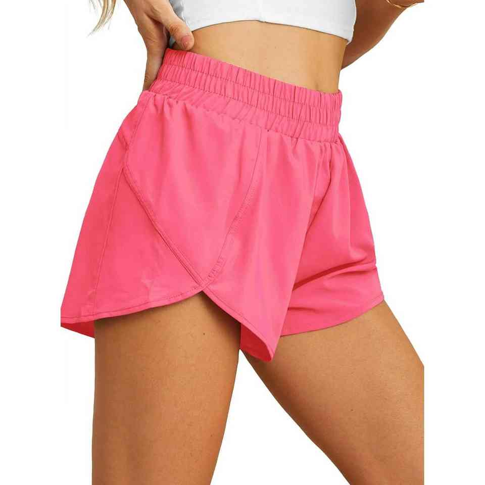 กางเกงขาสั้นเอวสูงของผู้หญิง96% ผ้าไนลอน4% สแปนเด็กซ์ดีไซน์สปอร์ตรัดรูปพร้อมกระเป๋าซ่อนระบายอากาศซับในเอวที่ซ่อนอยู่