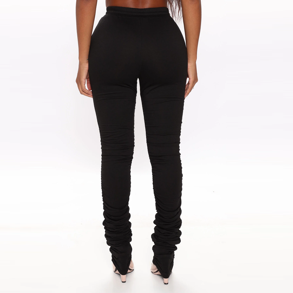 กางเกงวิ่งผ้าฟลีซเอวสูงของผู้หญิงกางเกงฤดูใบไม้ผลิทรงเอล้างแบนไซส์ XL