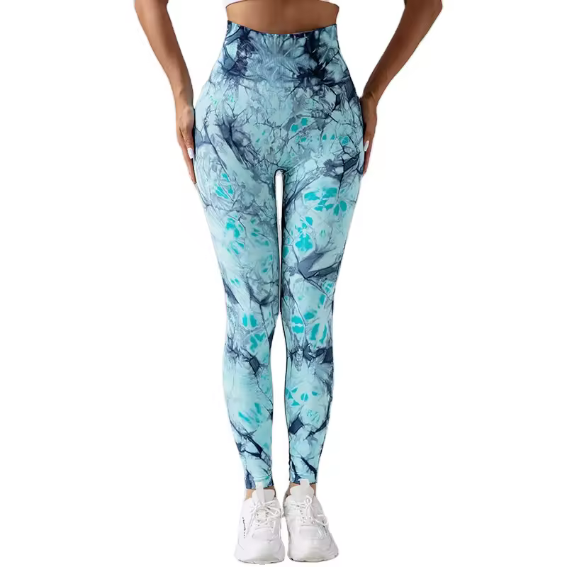 ชุดออกกำลังกายเอวสูงสำหรับผู้หญิงกางเกงโยคะย้อมสีมัดย้อมลายสีพื้นเลกกิ้งได้แรงบันดาลใจจาก TikTok