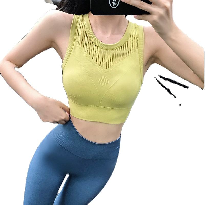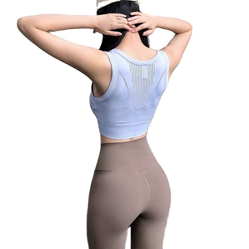 เสื้อชั้นในกีฬาแบบไร้สายสำหรับผู้หญิง ระบายอากาศได้ดี รองรับระดับปานกลาง ดีไซน์หลังเว้าสวยงาม แบบรัดทรง เหมาะสำหรับโยคะ ออกกำลังกาย และเล่นกีฬา