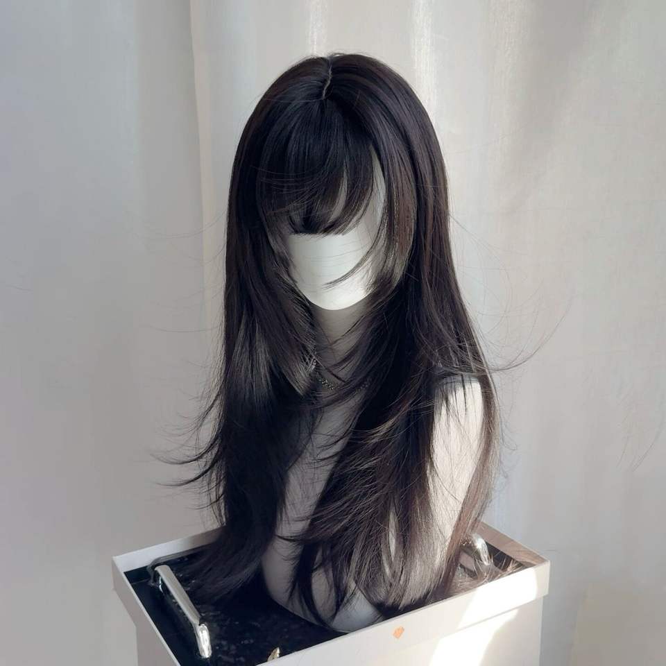 วิกผมตรงระดับสูงกรอบ muramura แท้ยาวถึงไหล่วิกผมเต็มศีรษะ