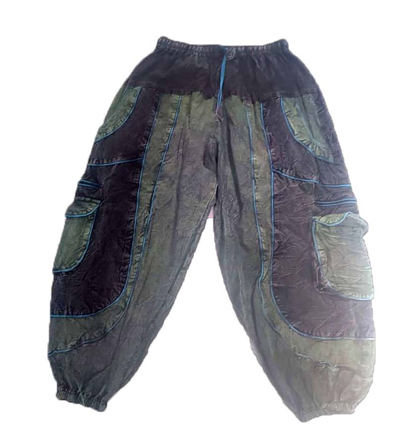 กางเกงทรงฮาเร็มฮิปปี้สำหรับผู้หญิง, กางเกงยืดเอวยิปซีกางเกงเย็บปะติดปะต่อกันสไตล์ GC-AP-597สำหรับผู้ชายและผู้หญิงทั้งคู่