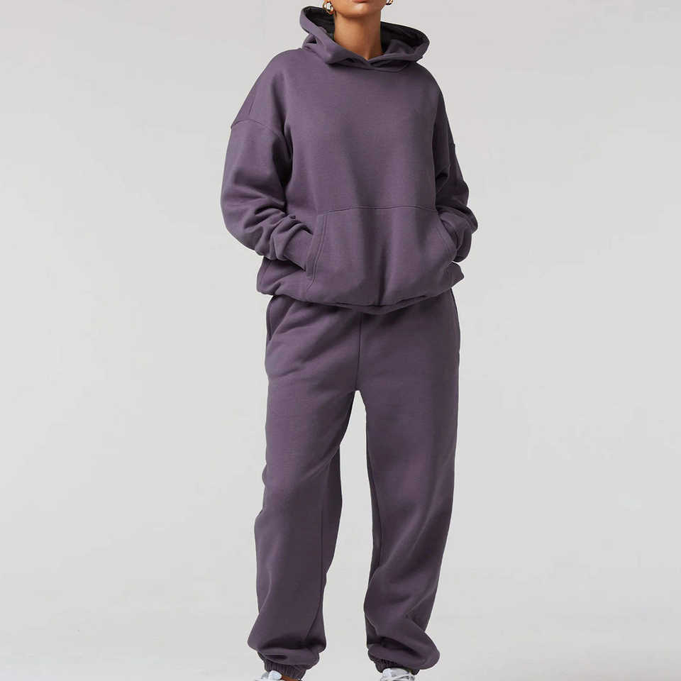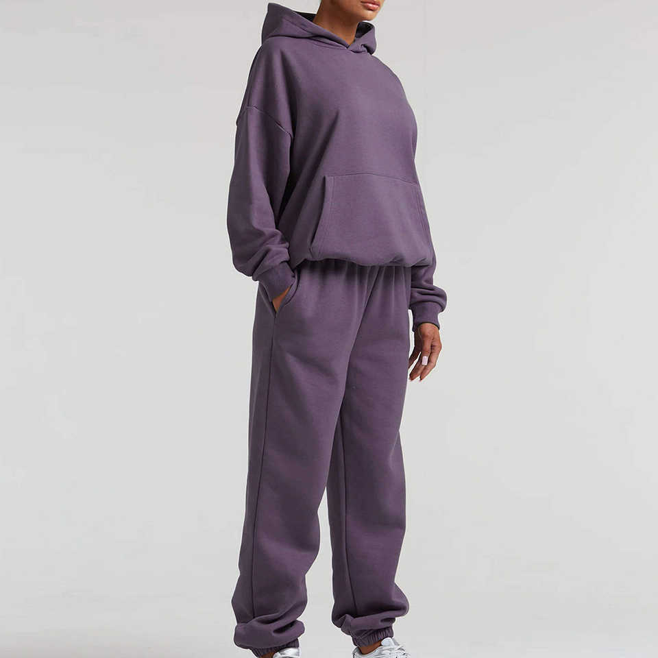 ชุดวอร์มมีฮู้ดสีพื้นลำลองสำหรับผู้หญิงไซส์ใหญ่ ชุดกีฬาฤดูหนาวราคาประหยัดสำหรับผู้ใหญ่ ชุดวอร์มผู้หญิงลดราคา