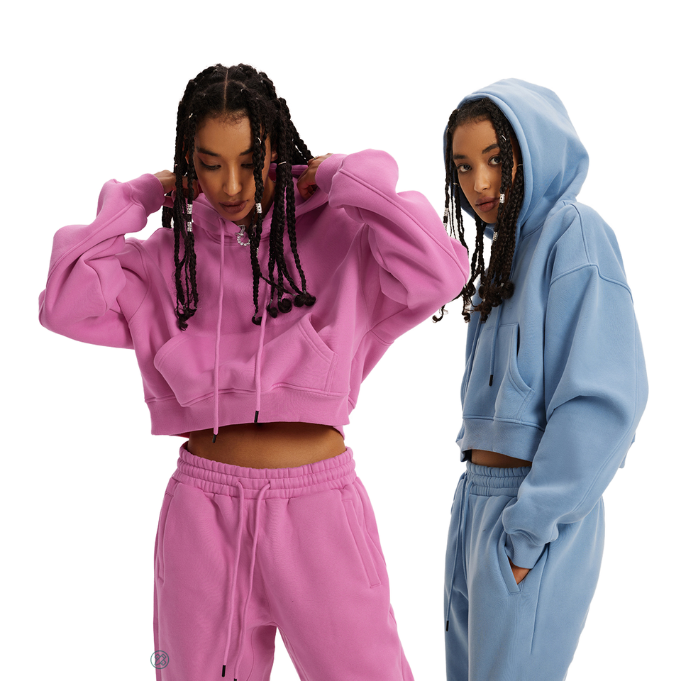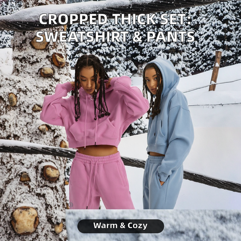 ชุดเซ็ตเสื้อสเวตเชิ้ตแขนสั้นแบบมีฮู้ด คอตตอนหนา สีพื้น สไตล์ลำลอง สำหรับผู้หญิง พร้อมกางเกงขายาว เหมาะสำหรับฤดูใบไม้ร่วงและฤดูหนาว