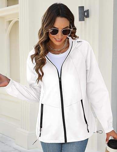 แจ็คเก็ตกันลมสำหรับผู้หญิงมีฮู้ดกันน้ำน้ำหนักเบามีซิป