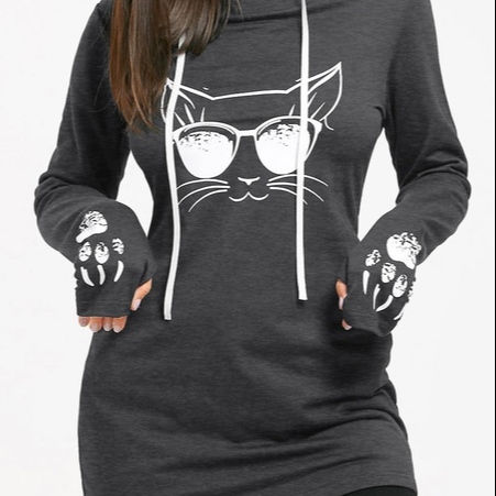 เสื้อสเวตเตอร์มีฮู้ดสำหรับผู้หญิง,เสื้อพิมพ์ลายการ์ตูนน่ารักแขนยาวมีฮู้ดสำหรับผู้หญิง