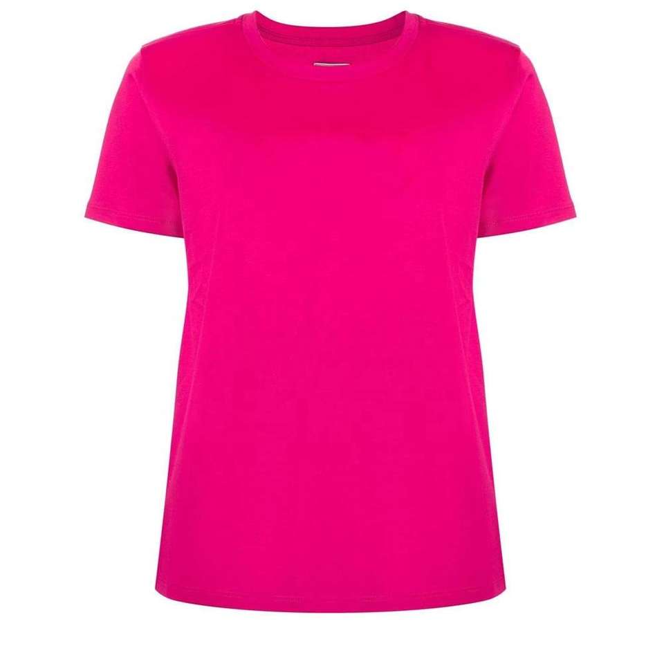 เสื้อยืดคอกลมแขนสั้นผ้าฝ้ายสีชมพูสดใสสำหรับผู้หญิง ระบายอากาศได้ดี ไม่เป็นขุย เป็นมิตรกับสิ่งแวดล้อม สวมใส่สบายในฤดูร้อน มีโลโก้
