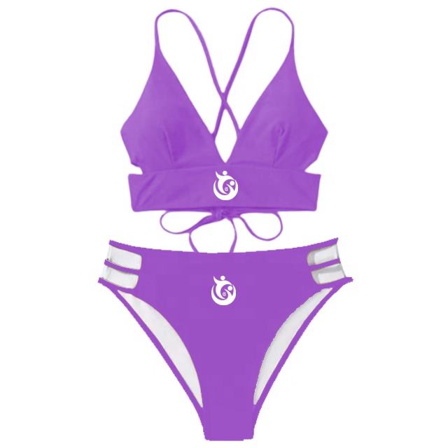 ชุดว่ายน้ำบิกินี่แฟชั่นสตรีสีพื้นคอวีแบบซับลิเมชันชุดว่ายน้ำสตรีสีพื้นแบบ2025