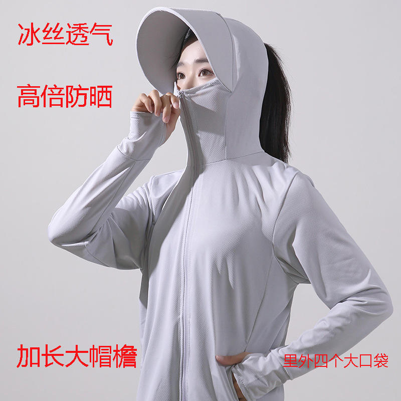เสื้อแจ็คเก็ตคลุมด้วยผ้าป้องกันแสงแดดสำหรับผู้หญิง UPF50 เสื้อกันลมกลางแจ้งระบายอากาศได้ดีสีทึบป้องกันรังสียูวีเสื้อแขนยาว