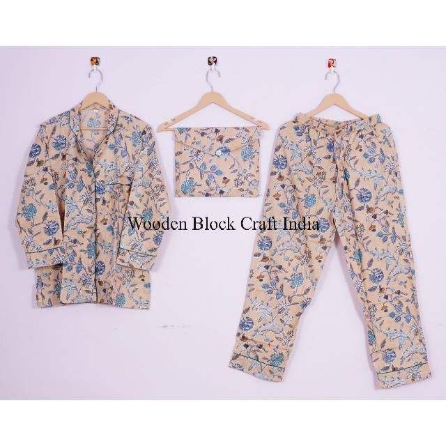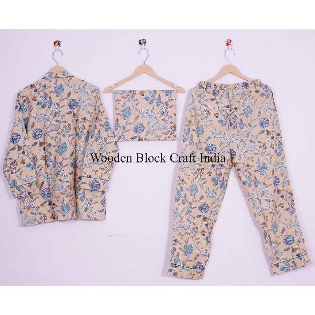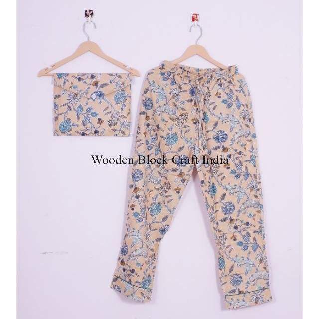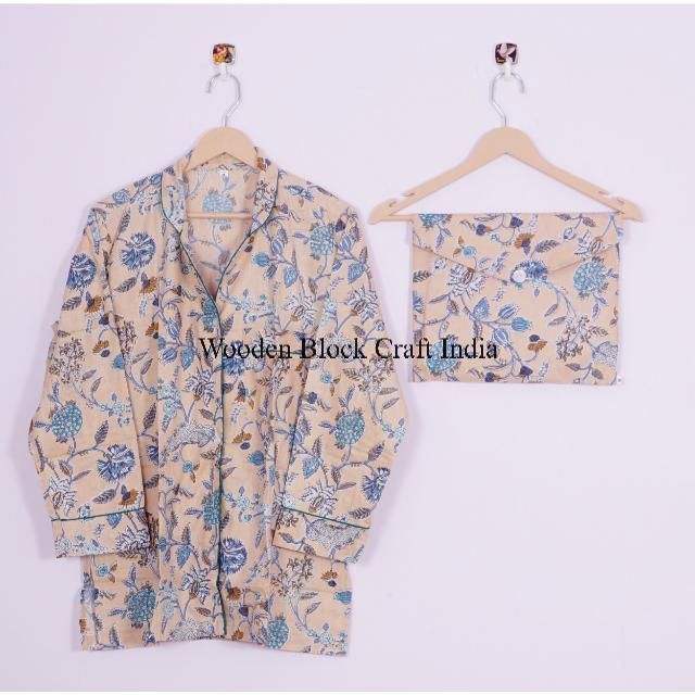 ชุดนอนผ้าฝ้ายพิมพ์ลายดอกไม้สีสันสดใสสไตล์อินเดียสำหรับผู้หญิง ชุดนอนลำลองสไตล์โบฮีเมียนและฮิปปี้สำหรับฤดูร้อน