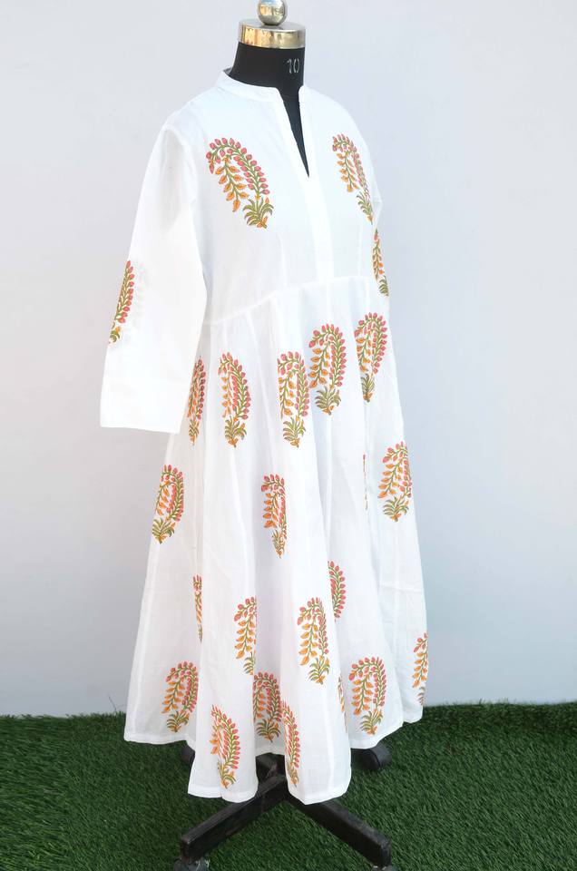 ชุดเดรสผ้าฝ้ายพิมพ์ลายสไตล์อินเดียสำหรับผู้หญิงเดรสลำลองฤดูร้อน