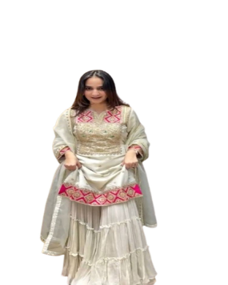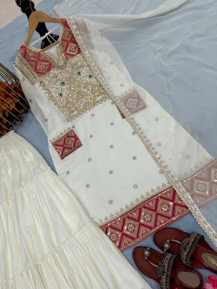 ชุดคุรตะผ้าไหมผสมฝ้ายสไตล์อินเดียและปากีสถานสำหรับงานปาร์ตี้ ทรงตรงแบบวัติกัน 3 ชิ้น สำหรับเด็กหญิงและสตรี