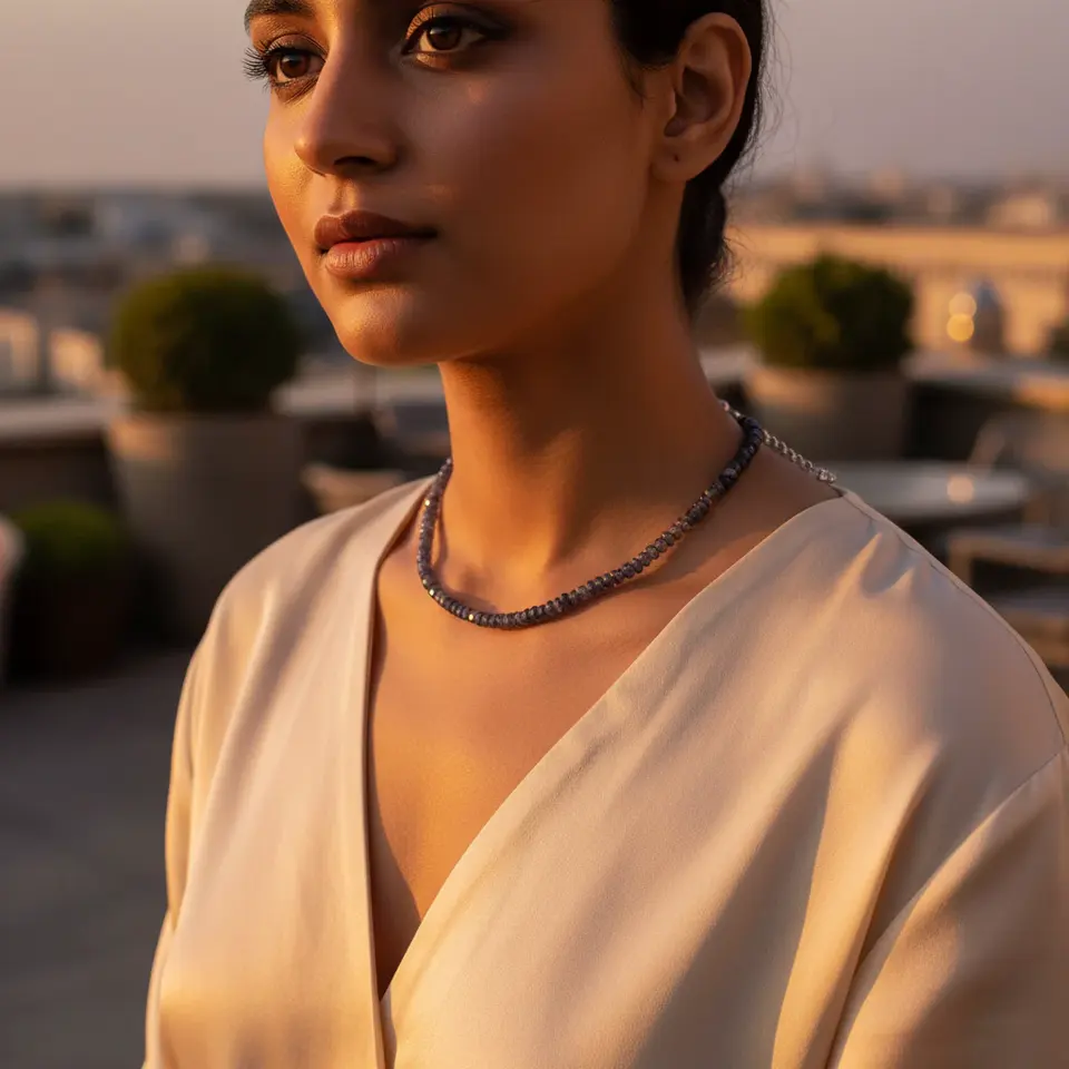 สร้อยคอลูกปัดไอโอไลต์สำหรับผู้หญิง ดีไซน์ทันสมัย ทำจากเงินแท้ ของขวัญแฟชั่น
