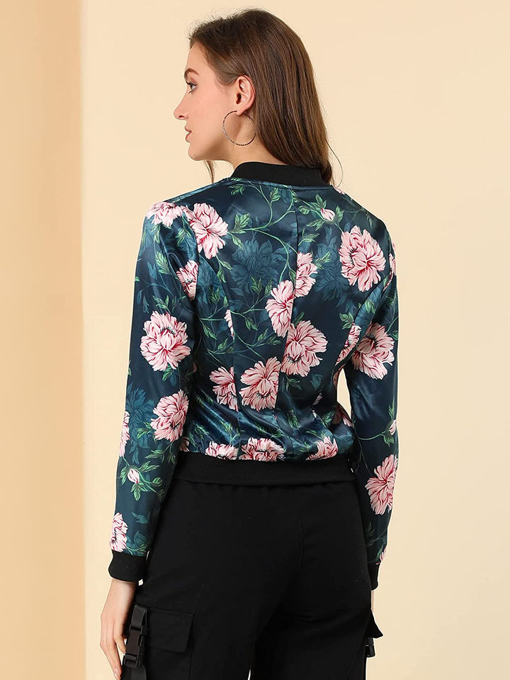 บอมเบอร์แจ็คเก็ตหนังสำหรับผู้หญิงเสื้อโค้ทแฟชั่นคอวีปักมีกระเป๋าผ้าถักพิมพ์ลาย