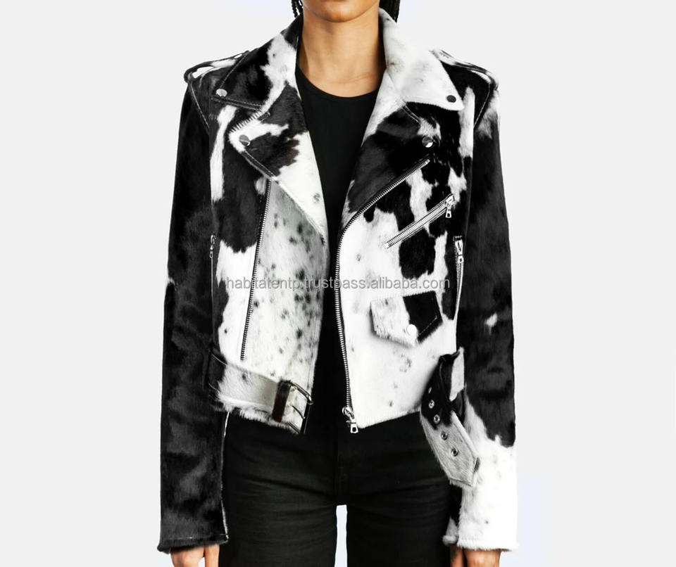 แจ็คเก็ตผู้หญิง หนังวัวแท้ ขนวัว ทำจากหนังวัวคุณภาพสูง พร้อมเข็มขัดคาดเอวสุดหรู แจ็คเก็ตสไตล์วาร์ซิตี้สำหรับผู้หญิง