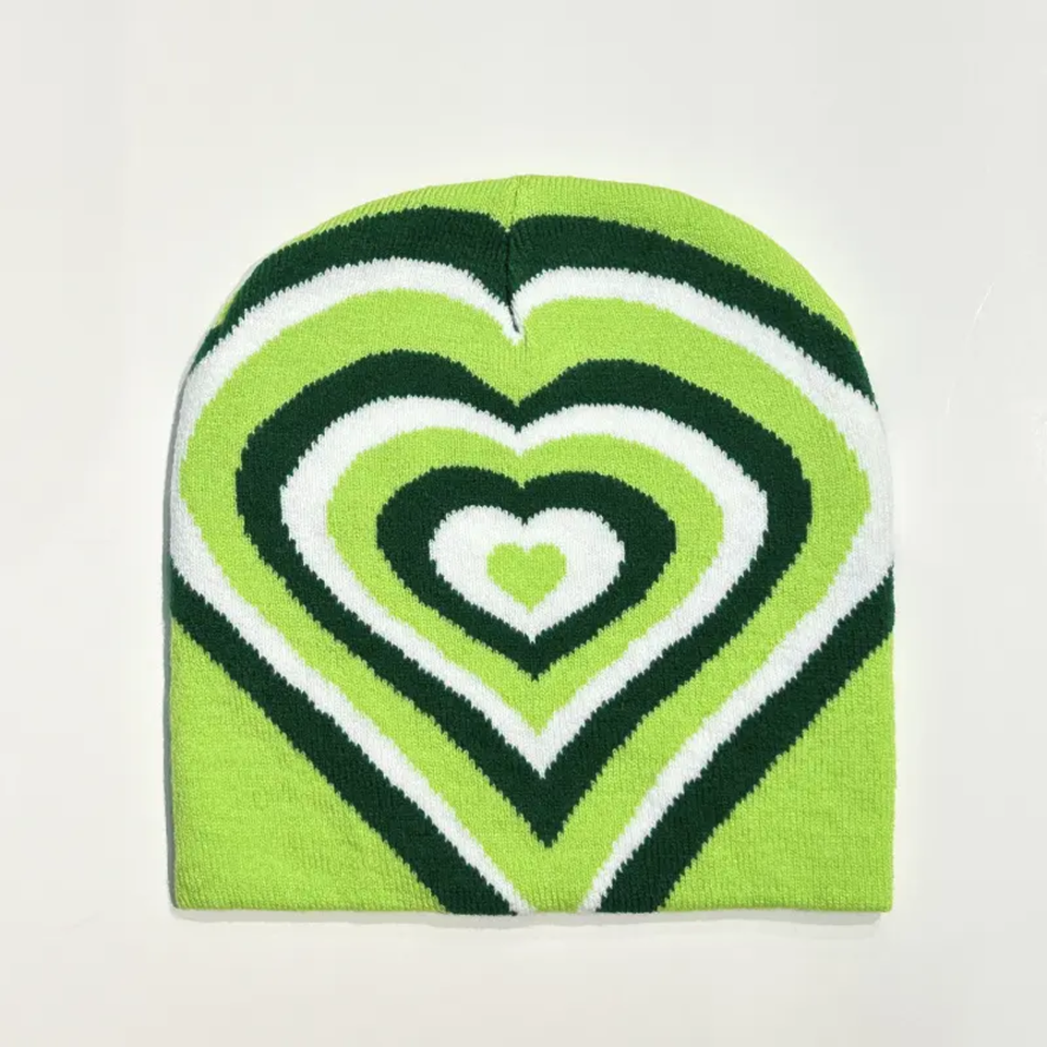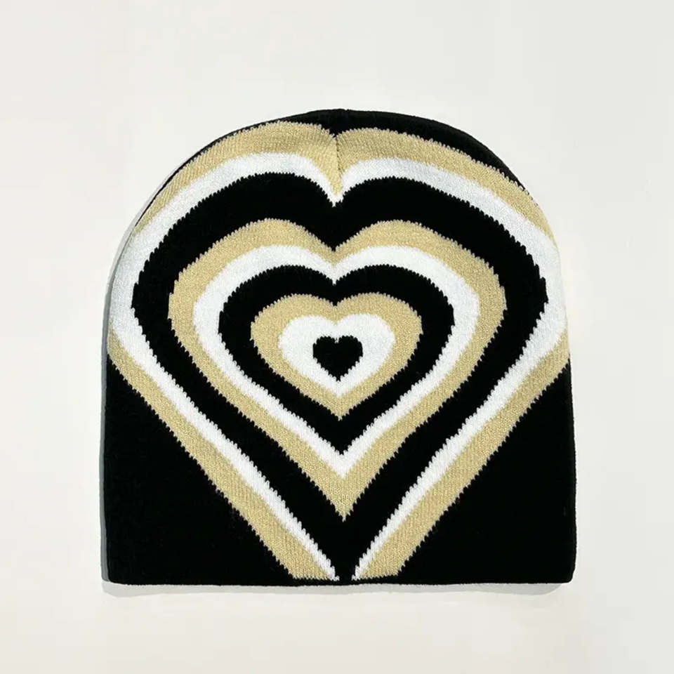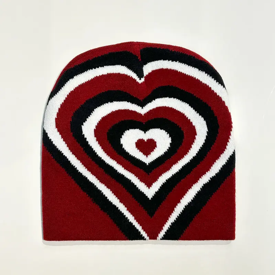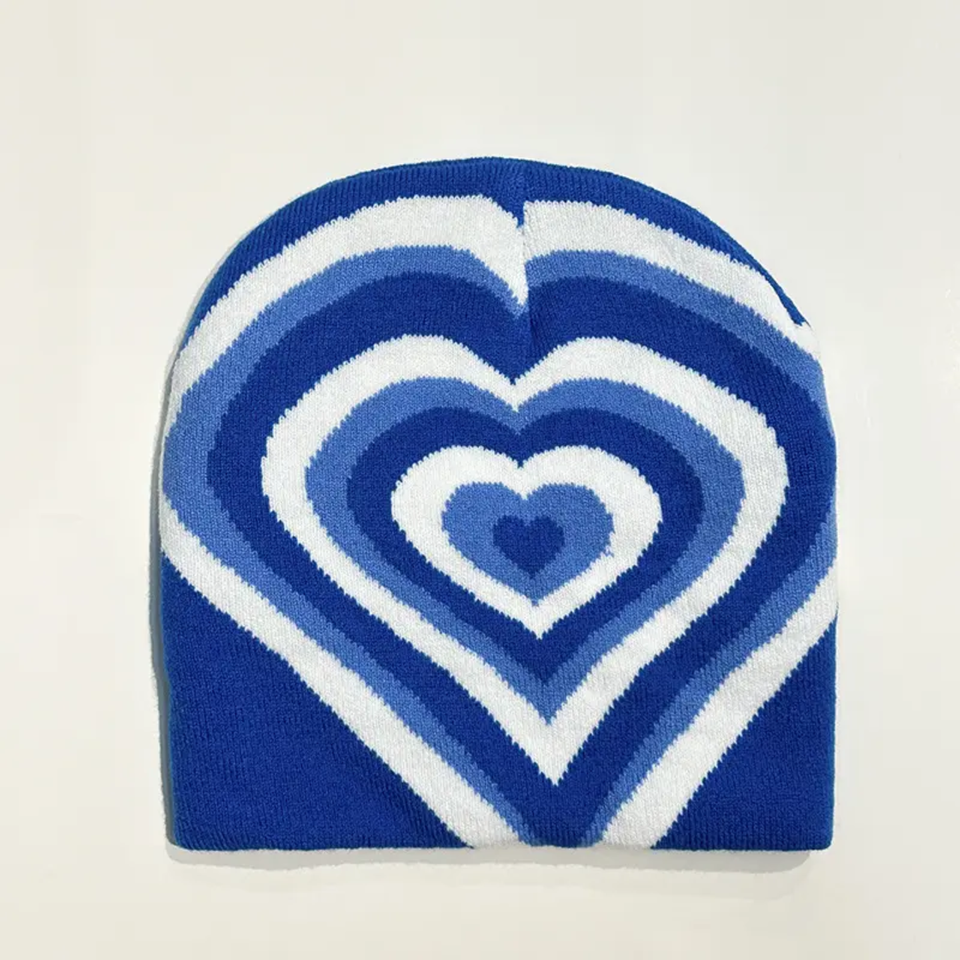 หมวกบีนนี่ลายหัวใจน่ารักสำหรับผู้หญิงหมวกถักอบอุ่นปักลายด้วยผ้าแจ็คการ์ดคุณภาพสูงและทันสมัย