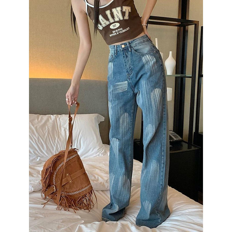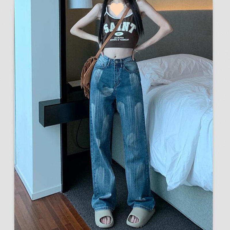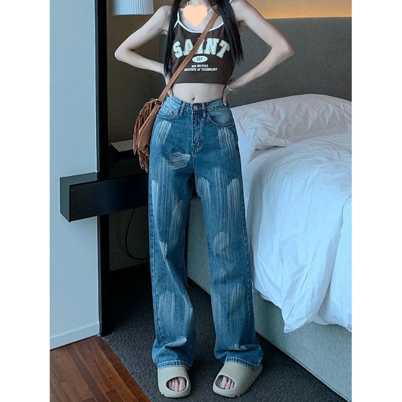 กางเกงยีนส์ขาตรงหลวมสำหรับผู้หญิง, กางเกงคาวบอย2025สไตล์เกาหลีขนาด X L