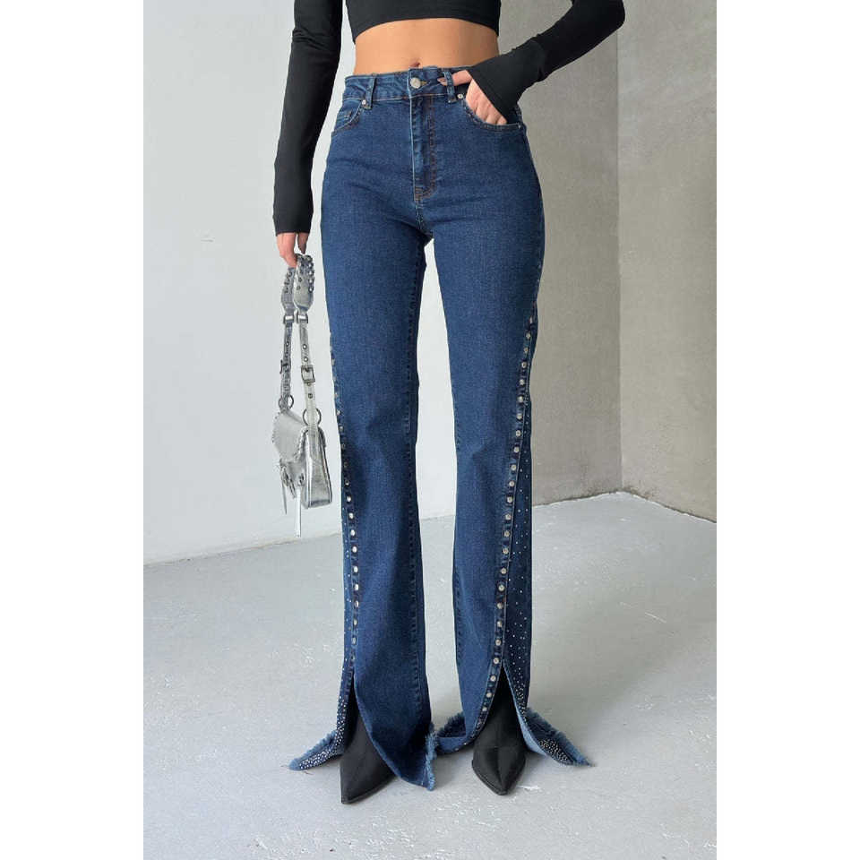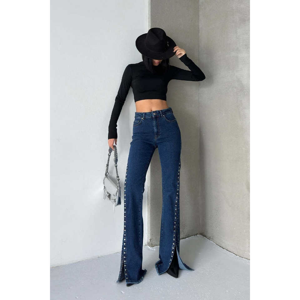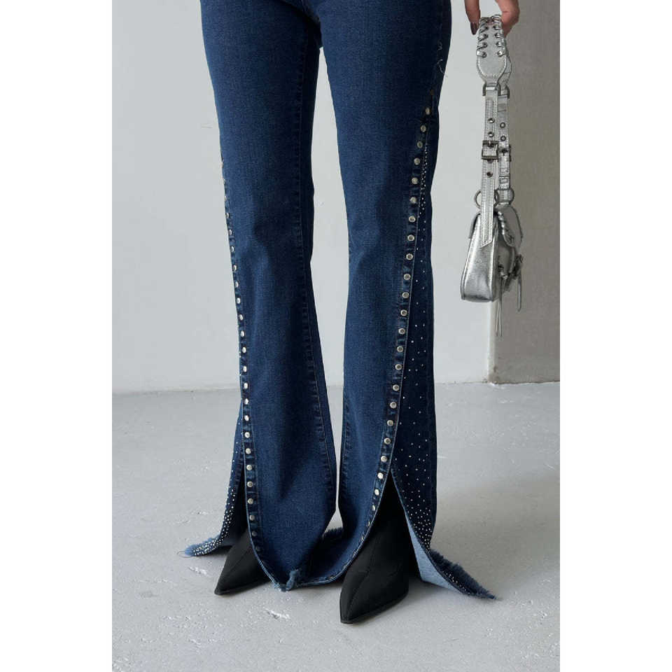 กางเกงยีนส์ผู้หญิงดีไซน์เก๋ไก๋พร้อมรอยผ่าชายกางเกงสุดทันสมัยเพื่อลุคที่มีสไตล์