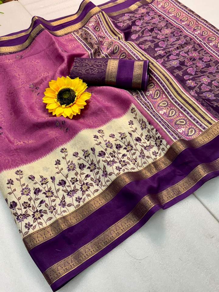 ผ้าส่าหรีไหมคันจิวารัมสำหรับผู้หญิง ประดับลายตารางทองคำ ลายนกยูง ทอแบบคาลัมคารี พร้อมขอบลายฮัมซา ผลิตในอินเดีย