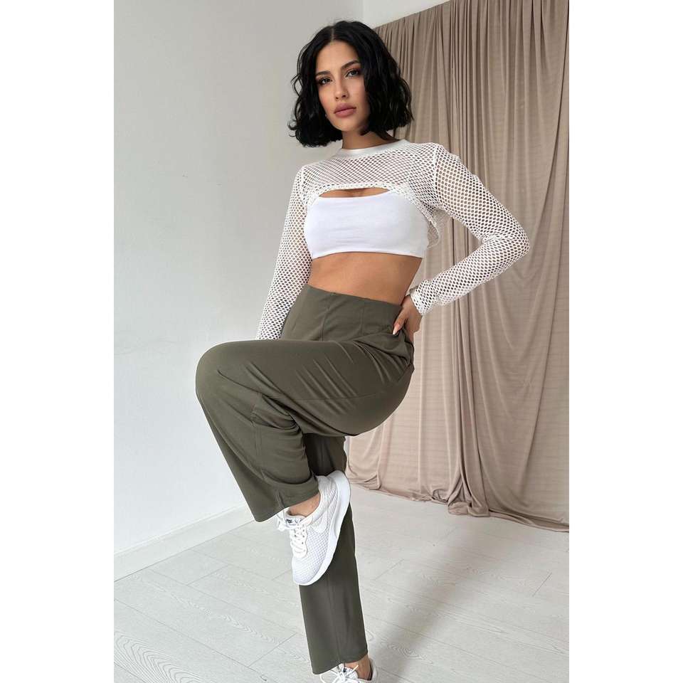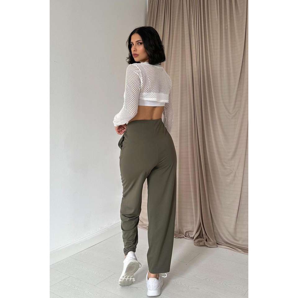กางเกงขายาวลำลองผ้าลูกฟูกสีกากีสำหรับผู้หญิง ระบายอากาศได้ดี เอวกลาง ยางยืด ทรงคาร์โก้ ซักสี ขายส่ง