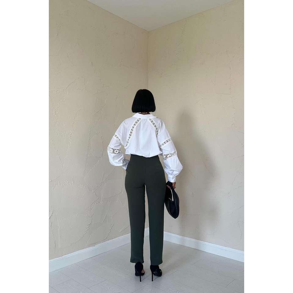 กางเกงขายาวทรงสลิมฟิตสีกากีสำหรับผู้หญิง ขายส่งเสื้อผ้าแฟชั่น