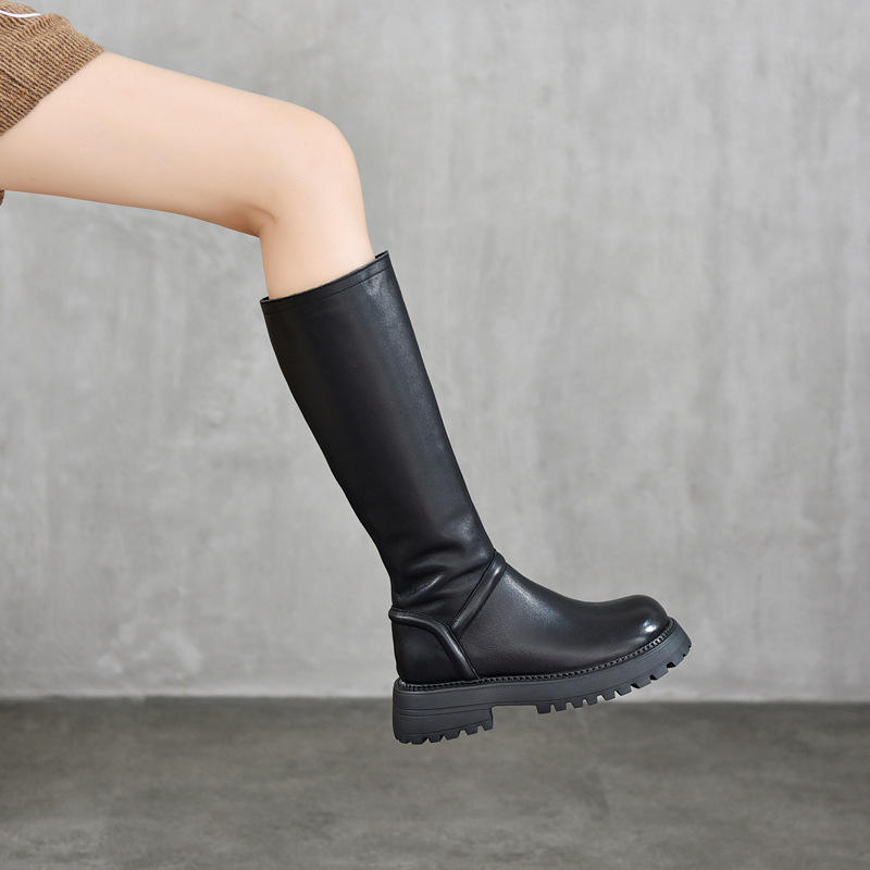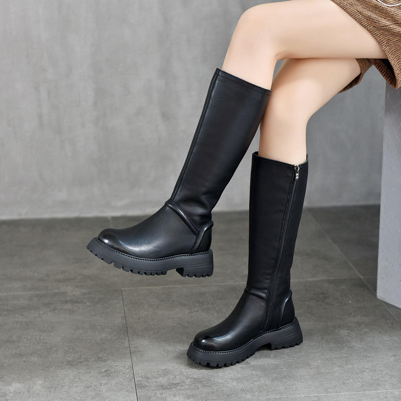 รองเท้าบูทหนังผู้หญิงสูงถึงเข่า ส้นหนา มีซิปด้านข้าง แฟชั่นลำลอง รองเท้าบูทสูงสำหรับผู้หญิง รองเท้าบูทสูงเหนือเข่าสำหรับผู้หญิง