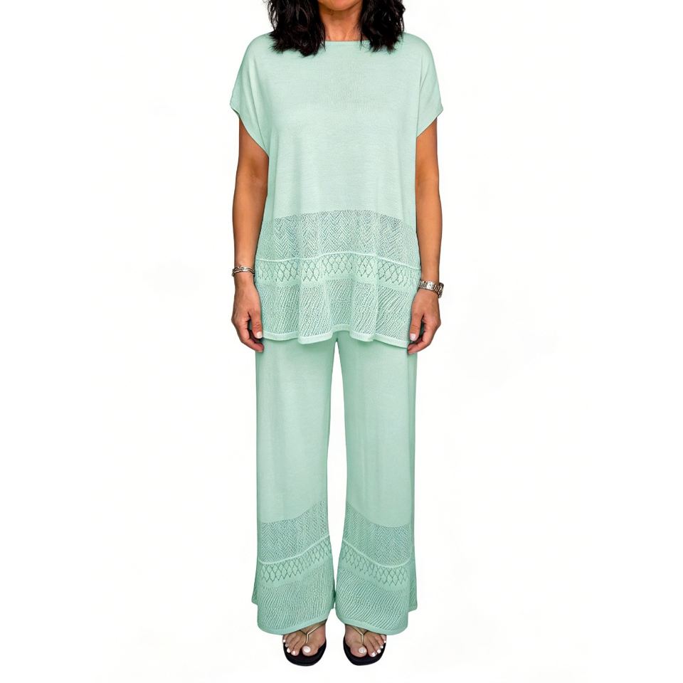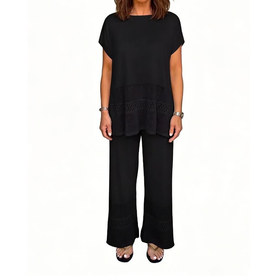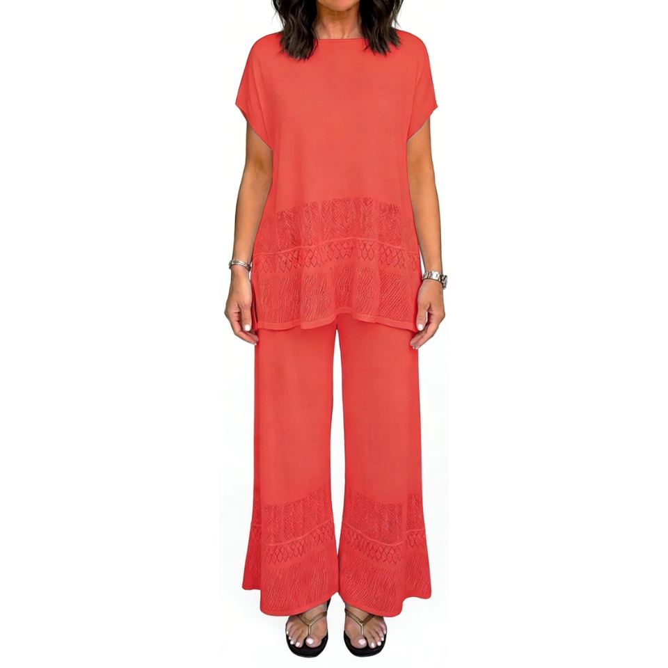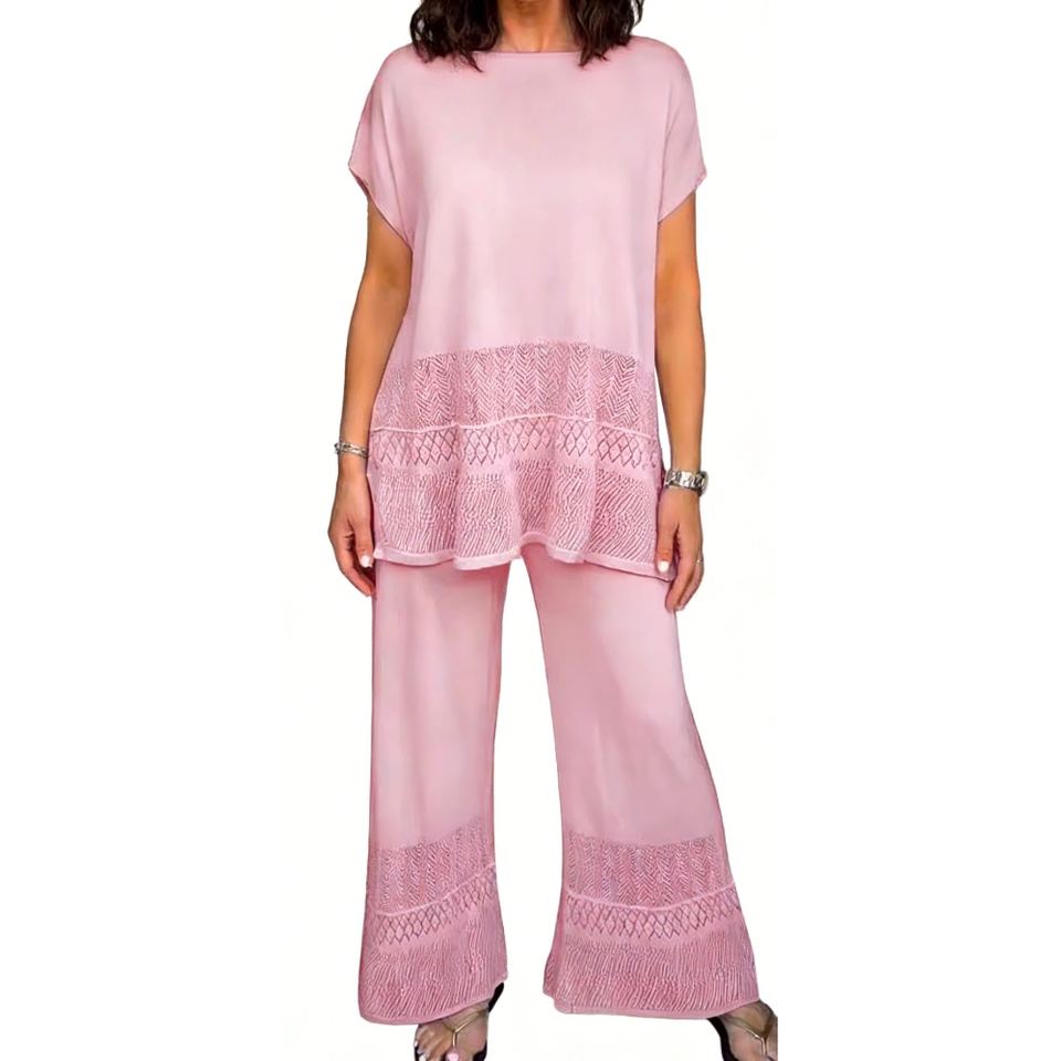 ชุดเซ็ตไหมพรมผู้หญิง 2 ชิ้น เสื้อแขนสั้นทรงหลวม กางเกงขายาวทรงกว้าง ชุดลำลองเข้าชุด แฟชั่นไซส์ใหญ่