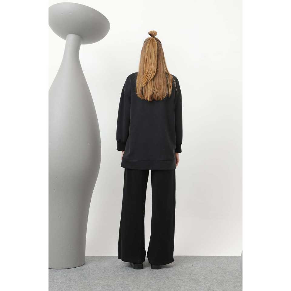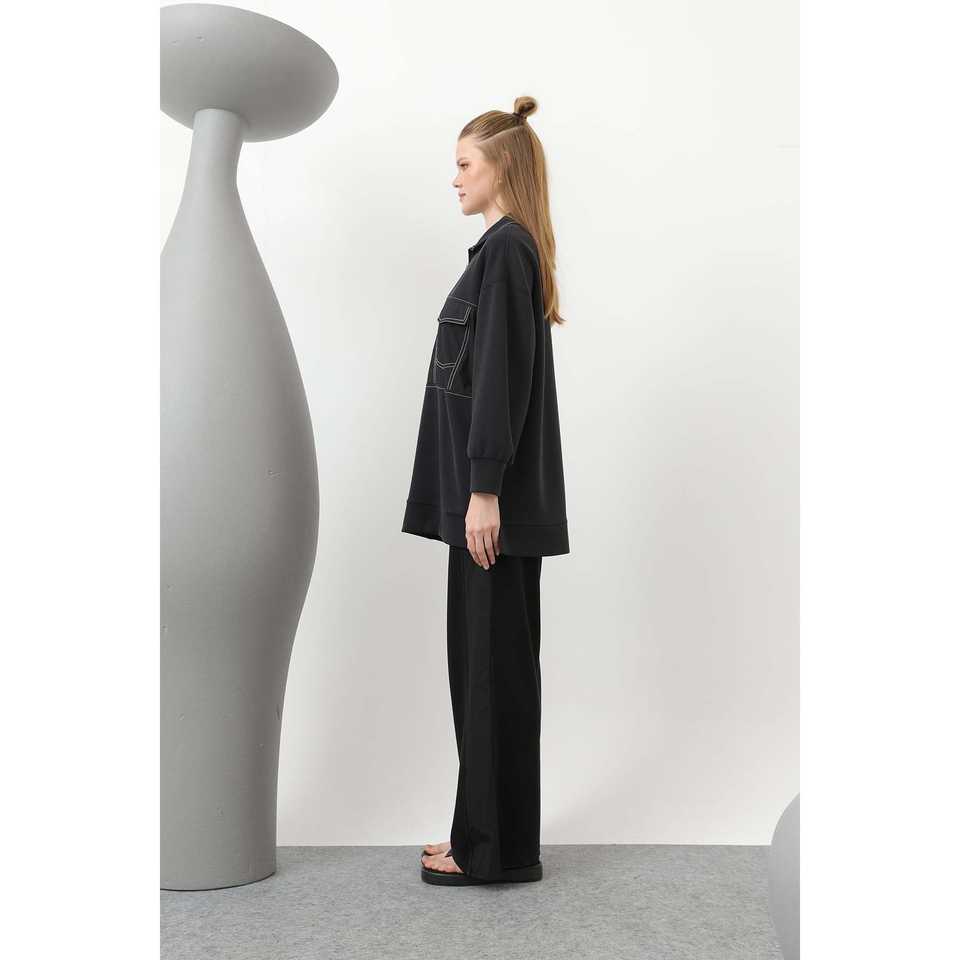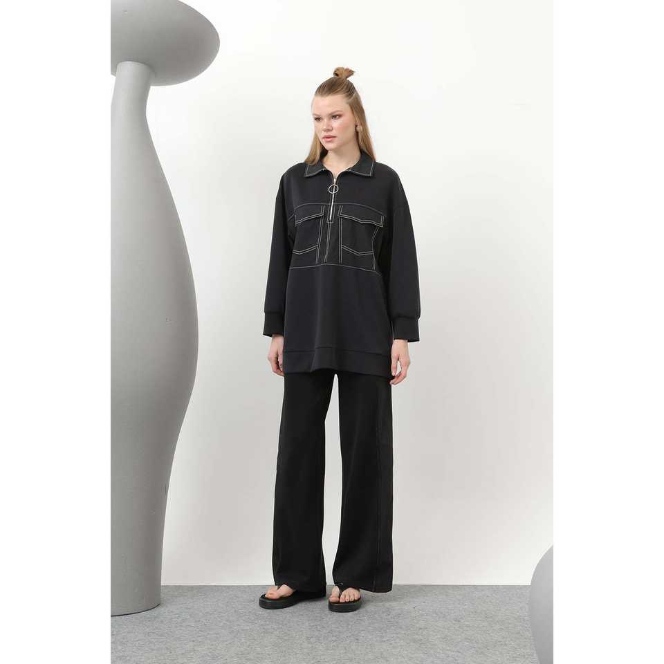 ชุดถักนิตติ้งสำหรับผู้หญิงพร้อมรายละเอียดการเย็บและกระเป๋า แขนยาว ลำลอง ใส่ได้ทุกฤดู สีครามกรมท่า ไซส์ S L