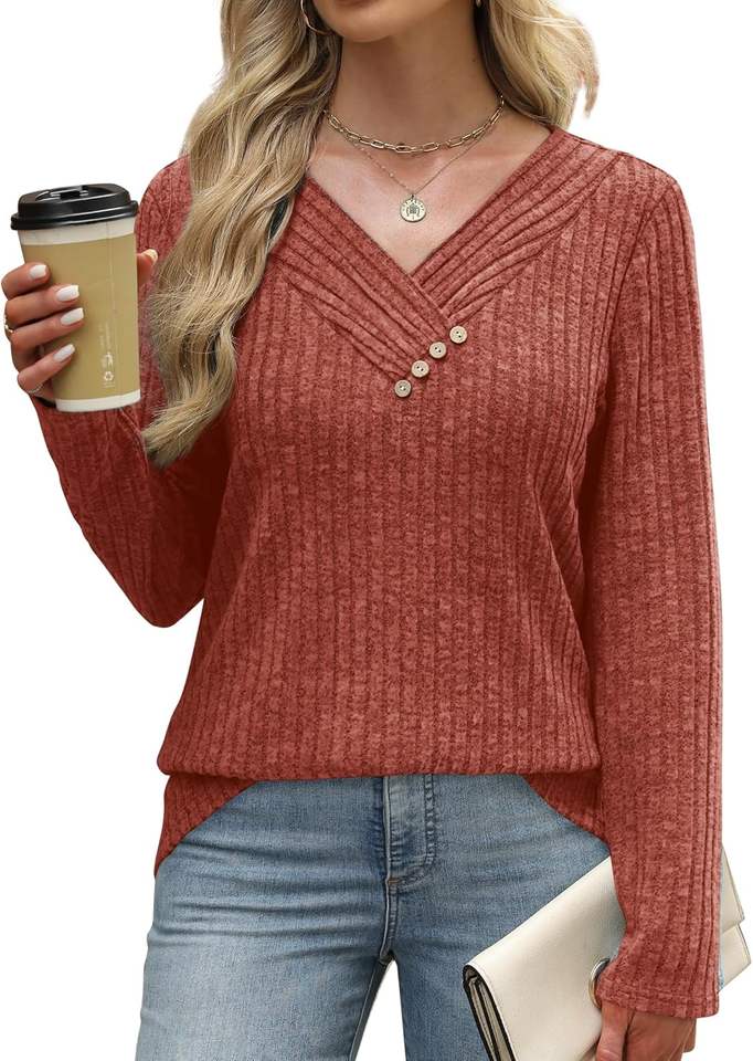Women's Knitted Sweater Long Sleeve V Neck Tops with Buttons Fall/Winter 2025 Fashion Outfits