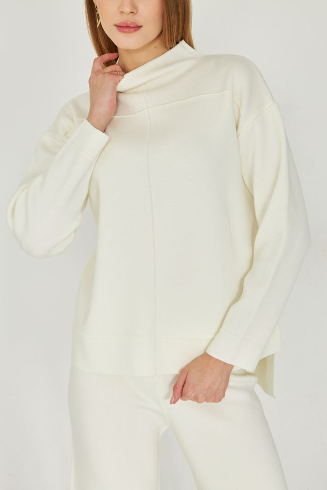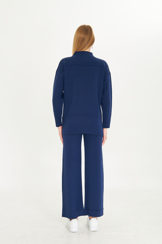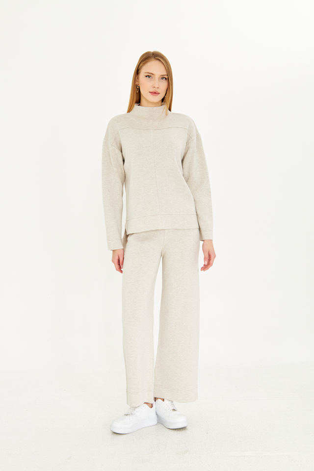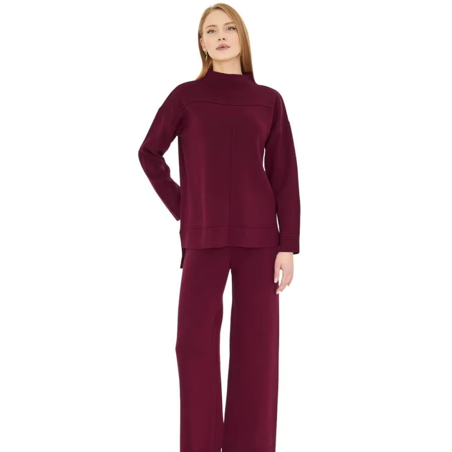 ชุดเสื้อสเวตเตอร์และกางเกง2ชิ้นสำหรับผู้หญิงชุดเสื้อถักแขนยาวเอวยางยืดชุดเสื้อถักขากว้างมีสไตล์