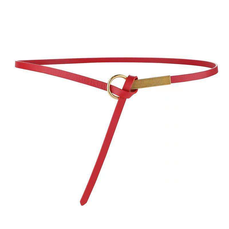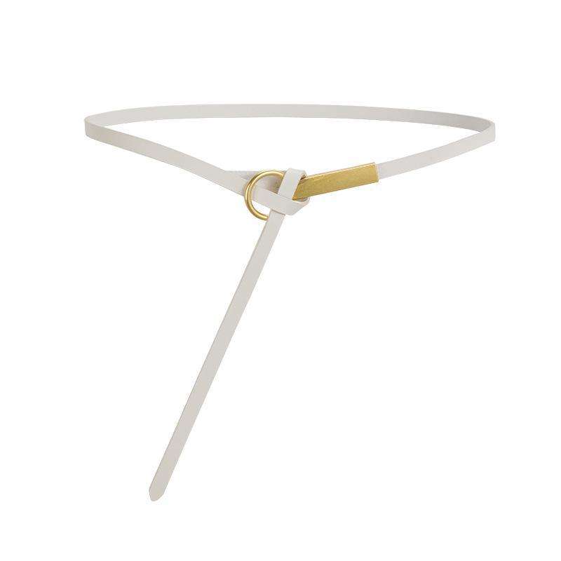 เข็มขัดหนังวัวแท้สำหรับผู้หญิง ความยาวตามสั่ง แฟชั่นแบบผูกตกแต่ง สำหรับชุดเดรสและสูท หัวเข็มขัดทองเหลืองแท้ ขนาด 45 นิ้ว ยี่ห้อ HJ รุ่น Model