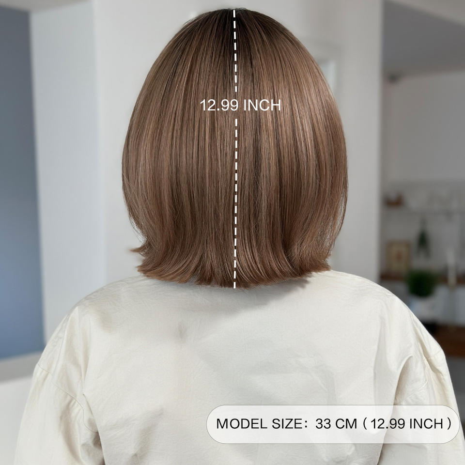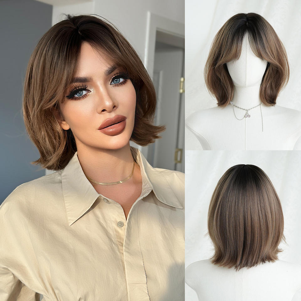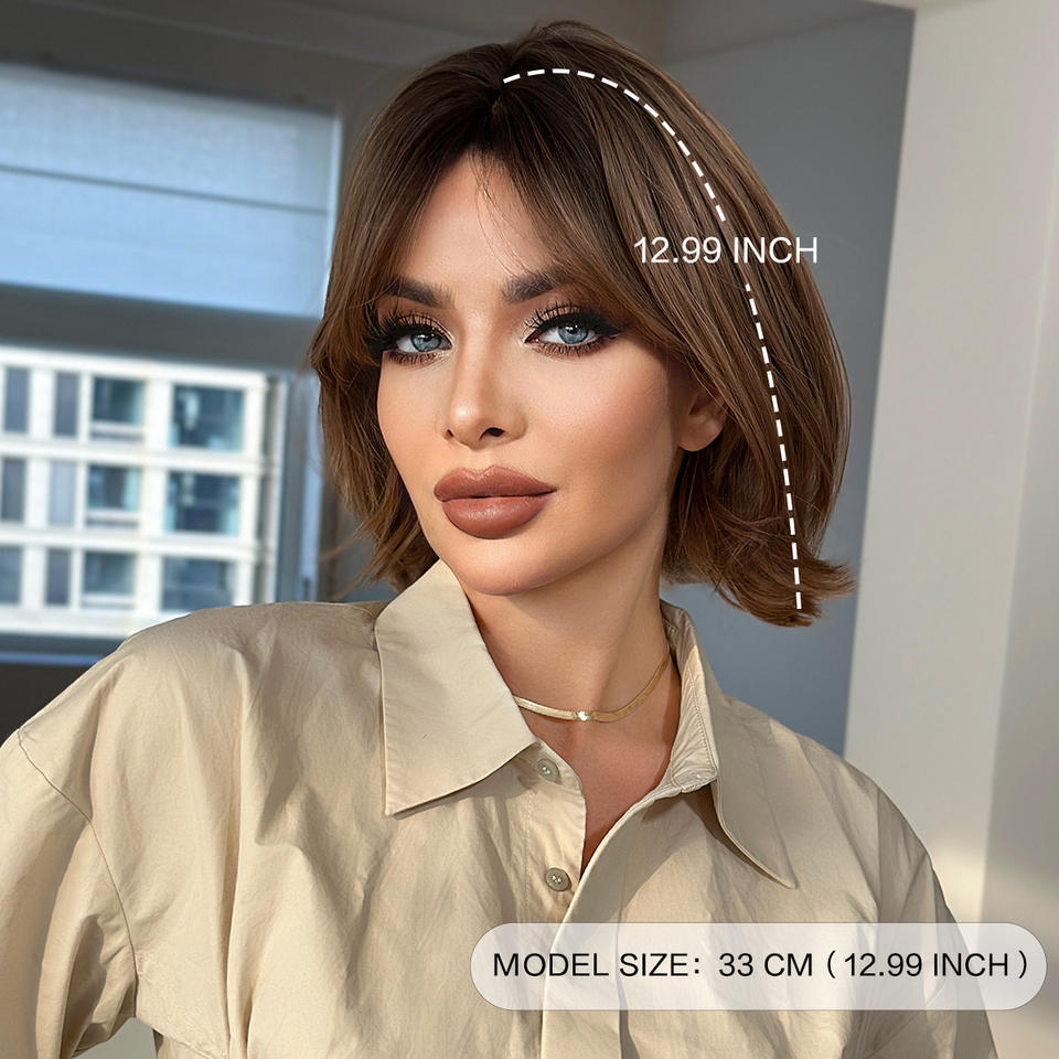 ผมสั้นสีน้ำตาลสไตล์เกาหลีของผู้หญิงวิกผมบ๊อบแบบลดอายุผมลอนผมยาวแบบมีหัวเข็มขัดชั้นในขนาดเล็ก