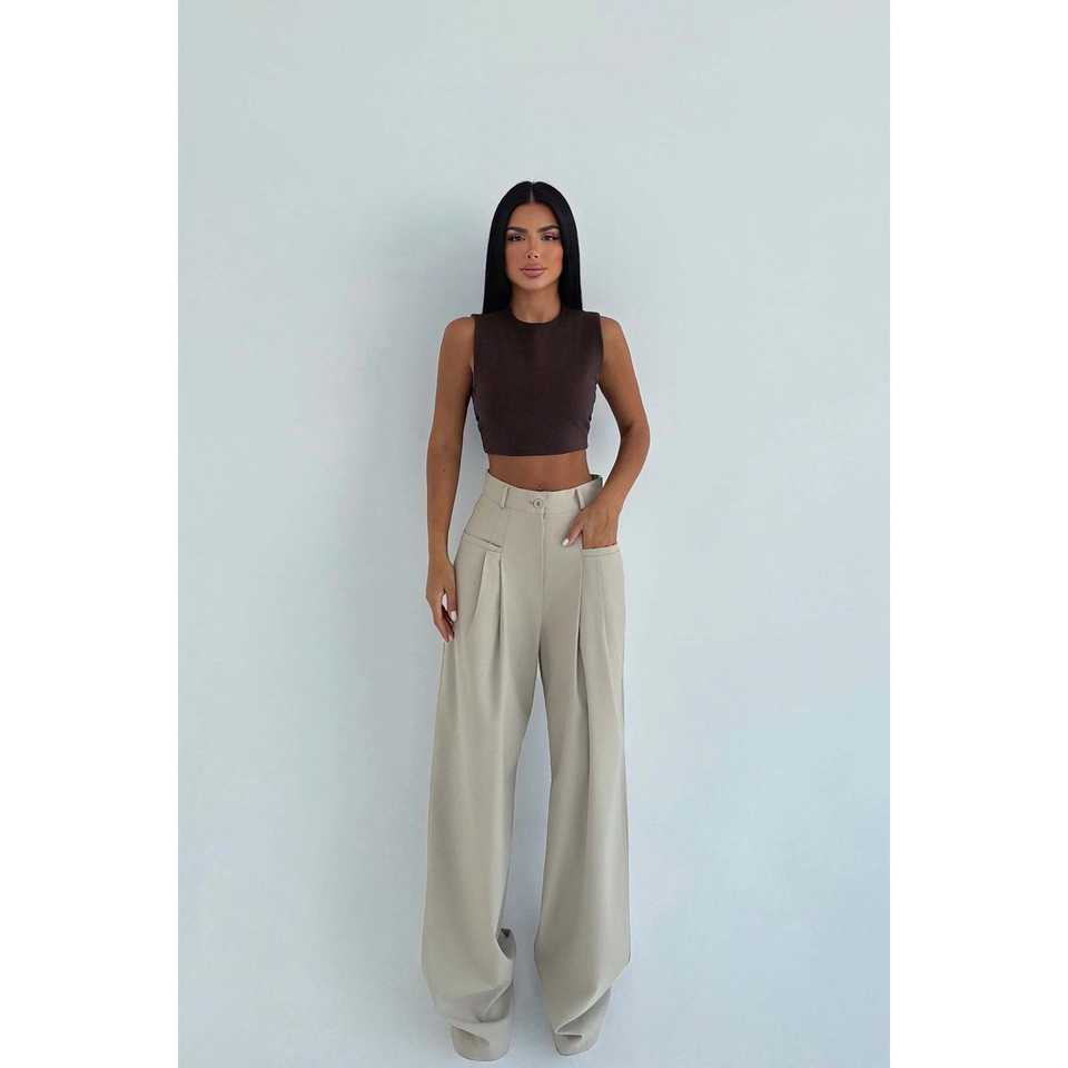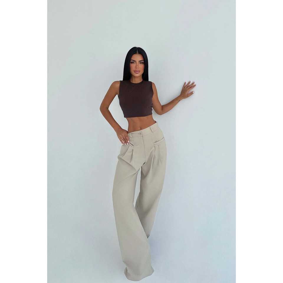 กางเกงขายาวผู้หญิง Kyota รุ่นครีม สวีทแพนท์ มีกระเป๋า ระบายอากาศได้ดี กางเกงคาร์โก้ เอวกลาง ยางยืด ปิดขอบเอวยางยืด ลายทางแบบเป็นทางการ สีล้าง