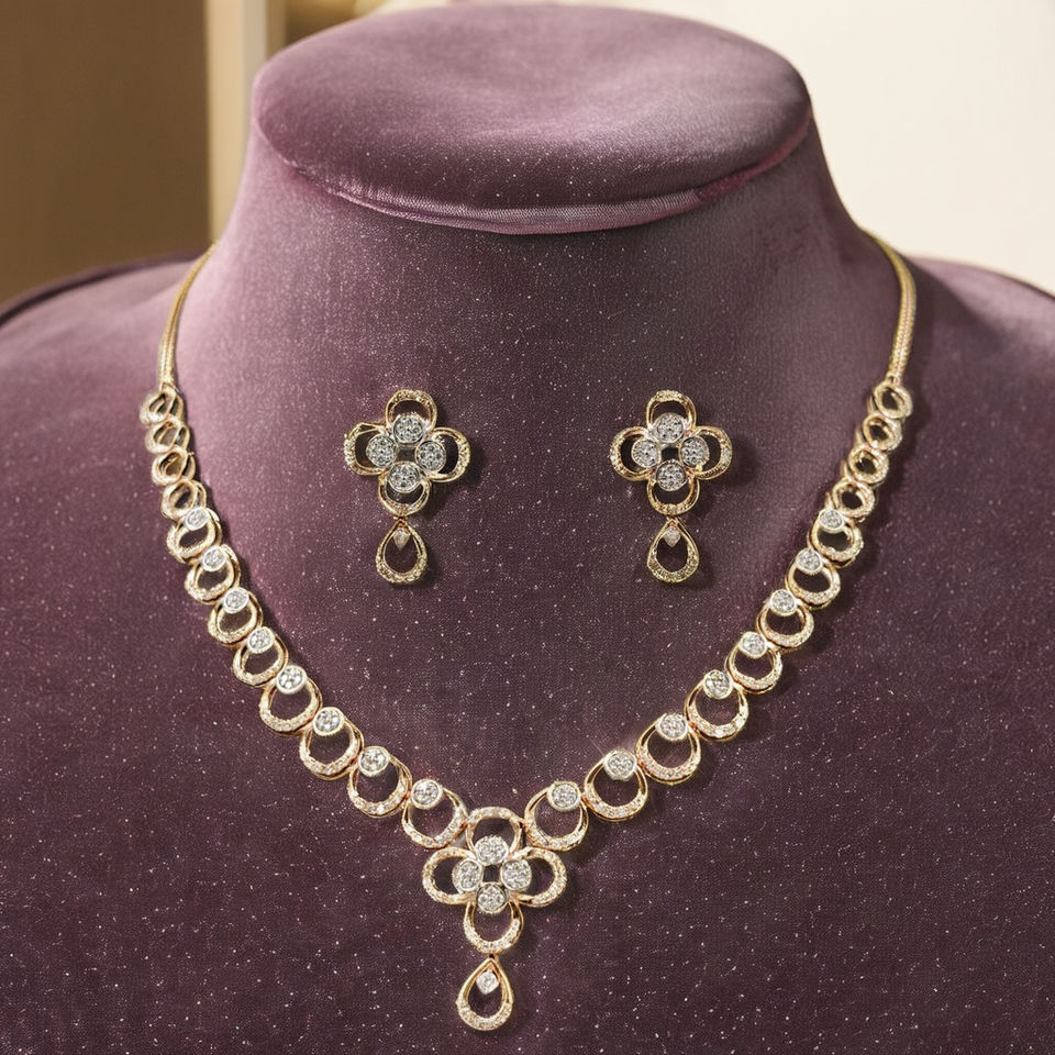 ชุดสร้อยคอเพชรเลี้ยงในห้องปฏิบัติการสำหรับผู้หญิง พร้อมต่างหู น้ำหนักเบา คุณภาพการเจียระไนเยี่ยม ความใสระดับ GH-SI ได้รับการรับรองจาก IGI ทองคำขาว 14K
