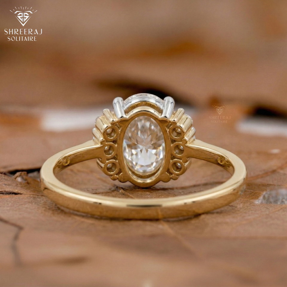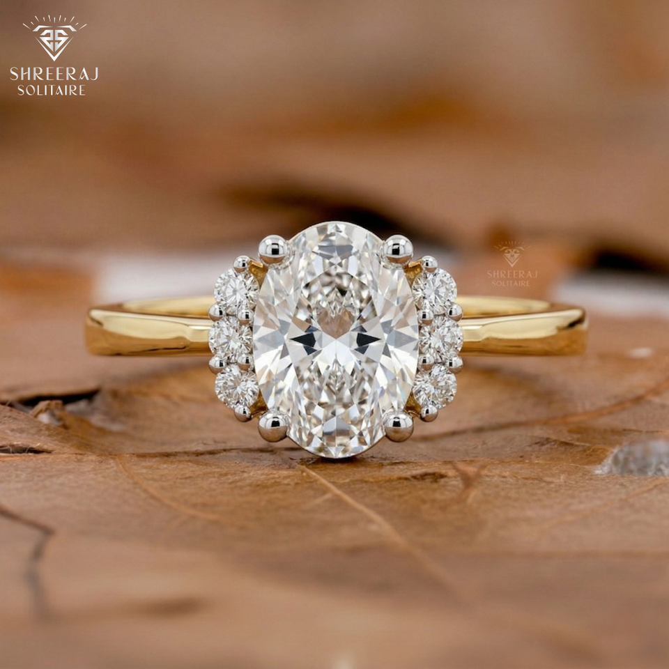 แหวนเพชรเลี้ยงในห้องปฏิบัติการสำหรับผู้หญิง 1.00 กะรัต เพชรรูปไข่เลี้ยงในห้องปฏิบัติการ พร้อมเพชรทรงกลมด้านข้าง รับรองโดย IGI แหวนหมั้นและแหวนแต่งงาน