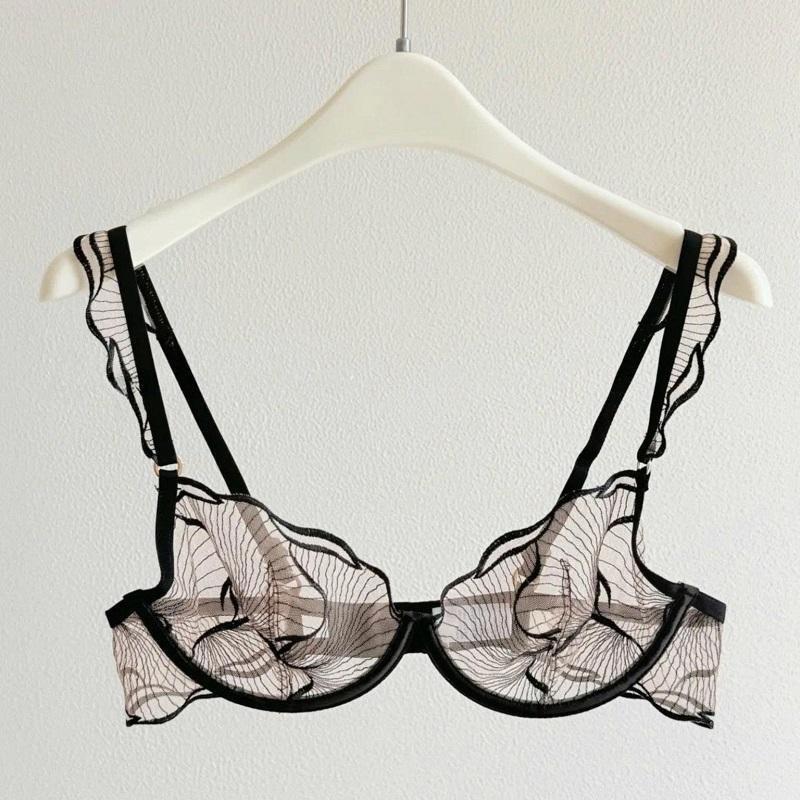 ชุดชั้นในลูกไม้แบบดันทรงสำหรับผู้หญิง พร้อมกางเกงในแบบเซ็กซี่ โปร่งใส ชุดชั้นในแบบมีสายรัดถุงน่อง
