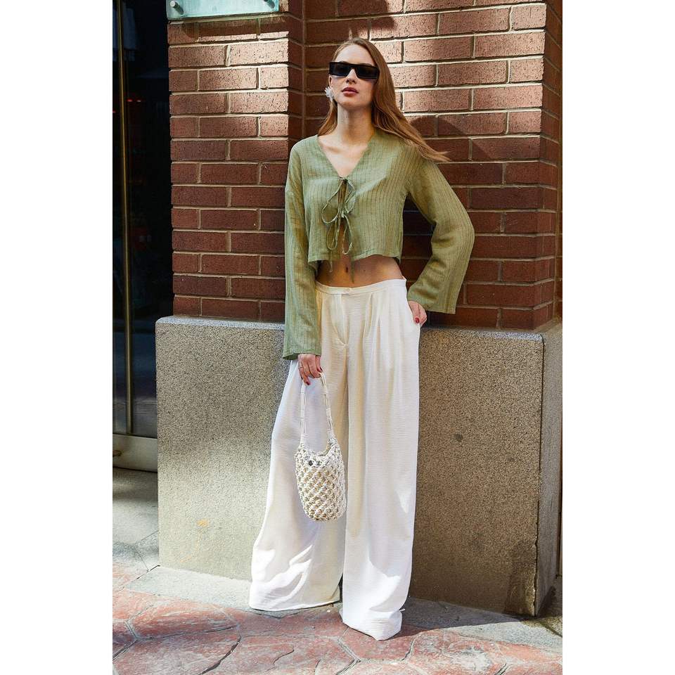 Bigelow เสื้อเบลาส์แขนยาวทรงหลวมปักลายดอกไม้ผ้าไหมถักแบบกำหนดเองสำหรับฤดูร้อนฤดูใบไม้ร่วง