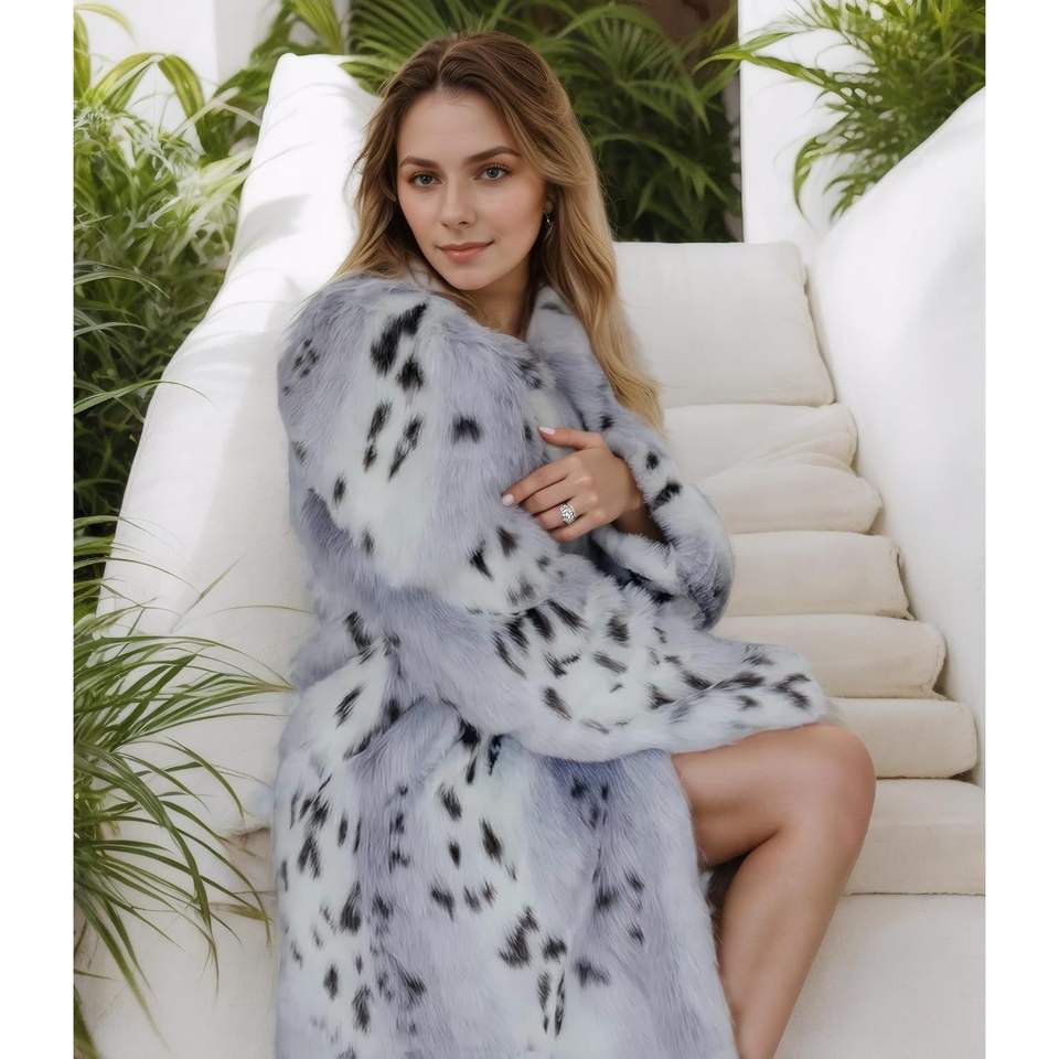 ชุดเดรสมีปกขนาดใหญ่ลายเสือชีตาห์มีเอกลักษณ์ของผู้หญิงชุดเดรสเข็มขัดแฟชั่นมีกระเป๋าเสื้อโค้ทขนสุนัขจิ้งจอกเทียมกระเป๋าของขวัญวันเกิดสโมสร