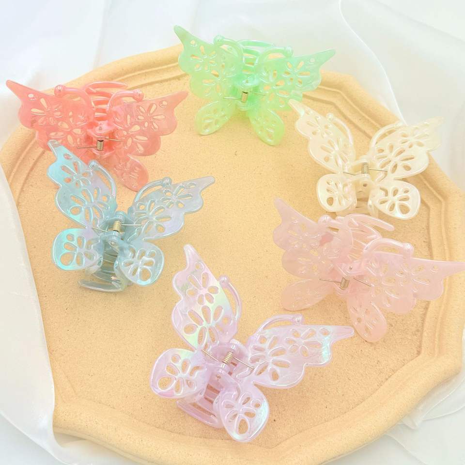 กิ๊บติดผมรูปผีเสื้อขนาดใหญ่ 8 ซม. สีสันสดใส ดีไซน์โปร่ง วัสดุพลาสติกเป็นมิตรกับสิ่งแวดล้อม แฟชั่นเรขาคณิตสำหรับผู้หญิง