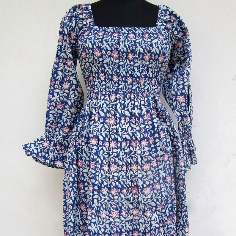 แม็กซี่เดรสทรงตรงยาวถึงเข่าแฟชั่นล่าสุดของผู้หญิงผ้าฝ้ายโพลีเอสเตอร์สำหรับปาร์ตี้ตอนเย็นมีกระดุมธรรมชาติ