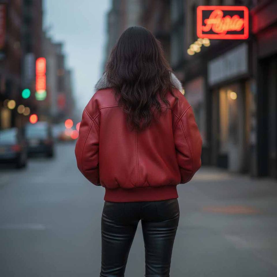 แจ็คเก็ตหนังบอมเบอร์สีพื้นสำหรับผู้หญิง พร้อมซิปและปกขนสุนัขจิ้งจอก สำหรับฤดูใบไม้ร่วง/ฤดูใบไม้ผลิ/ฤดูร้อน/ฤดูหนาว
