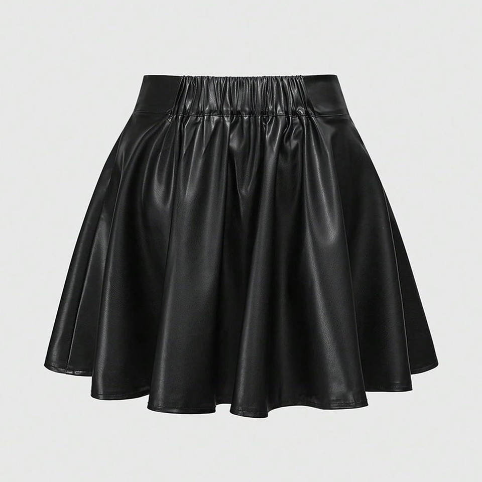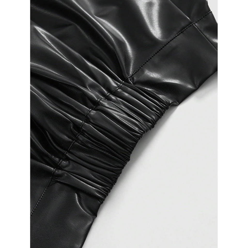 กระโปรงหนังสั้นทรงเอไลน์สำหรับผู้หญิง สไตล์โกธิค มีซิป เอวต่ำ จีบระบาย