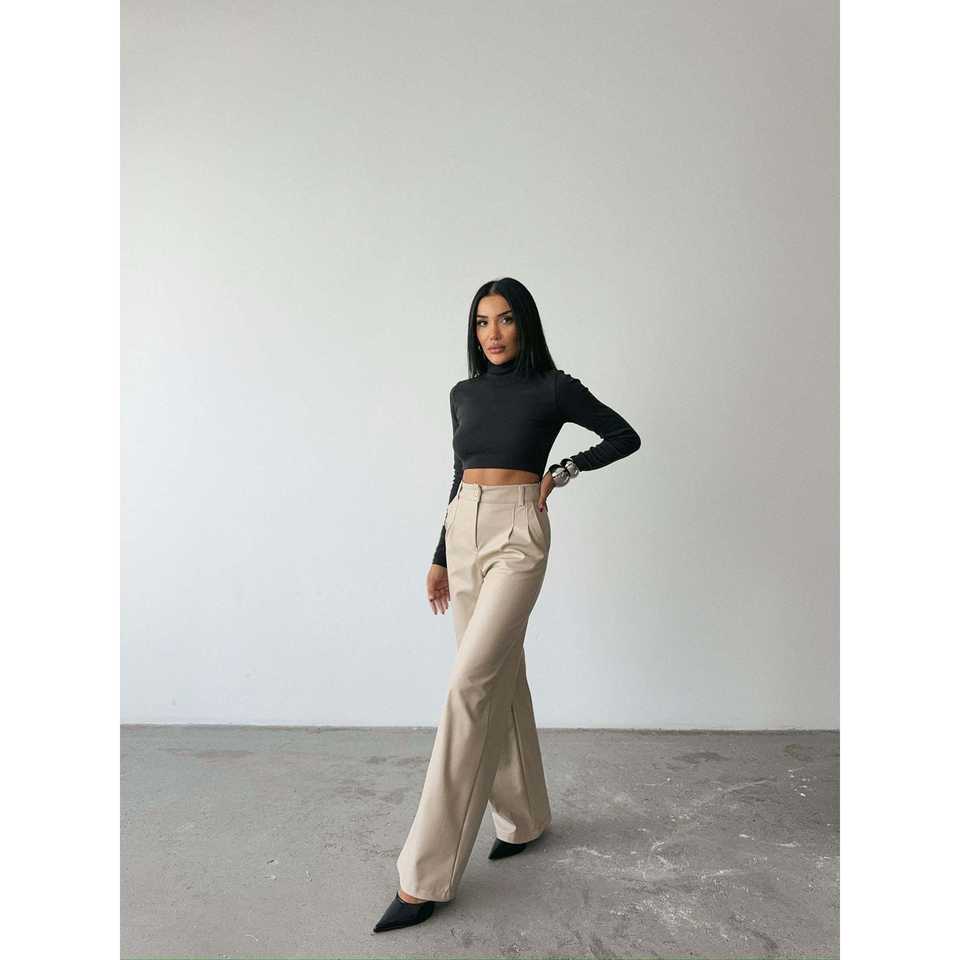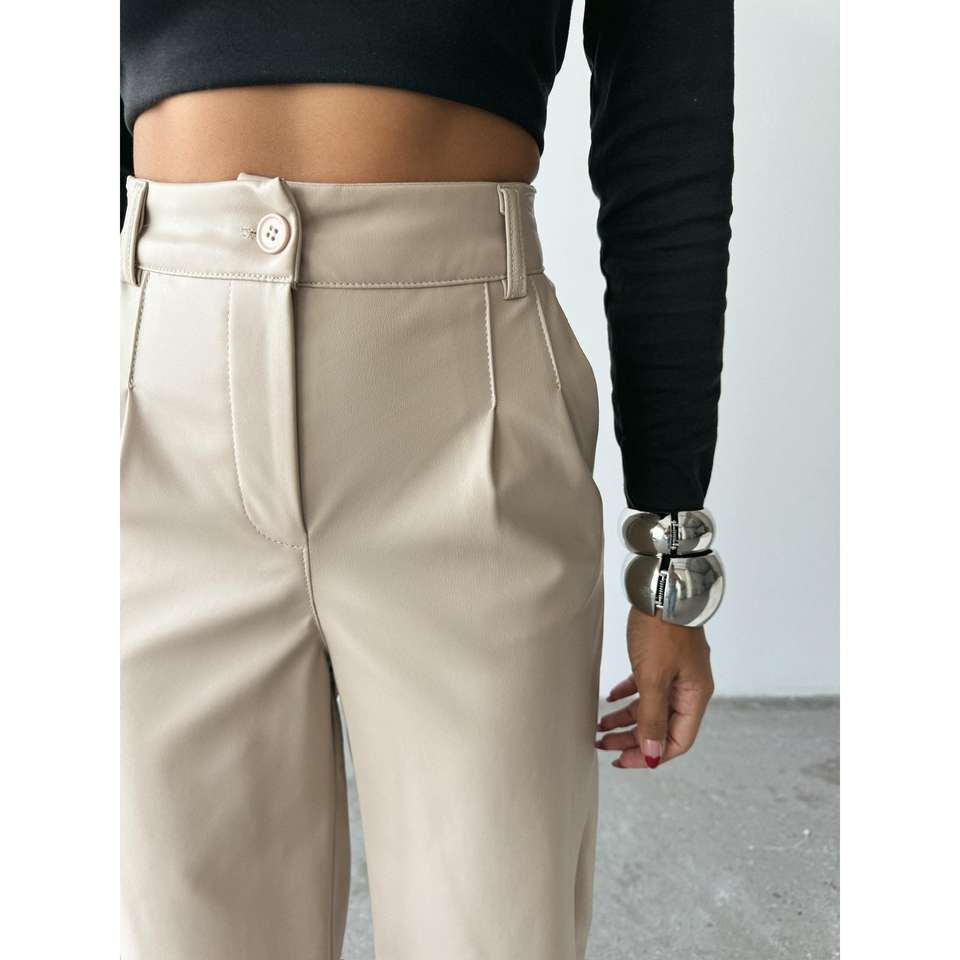 กางเกงหนังทรงปาลาซโซ่ขาตรงสีสโตนสำหรับผู้หญิง