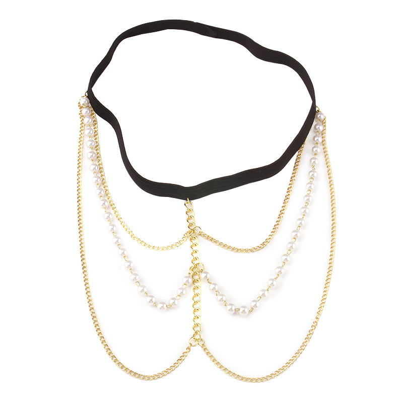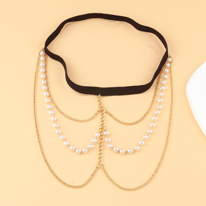 โซ่คล้องขาผู้หญิง ประดับมุกเทียม หลายชั้น โซ่ทอง แฟชั่นสำหรับงานปาร์ตี้ เครื่องประดับร่างกาย เชือกยางยืด อุปกรณ์ตกแต่ง
